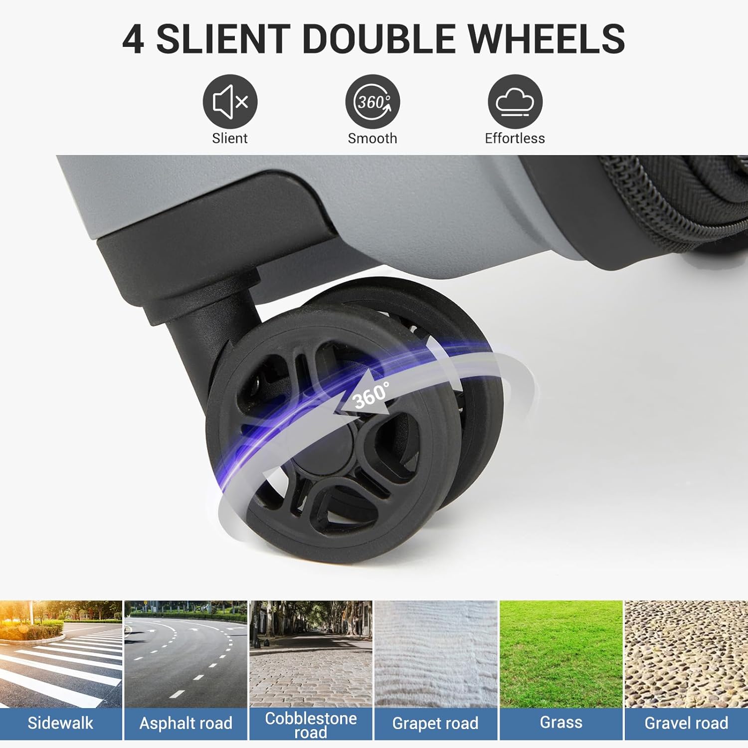 - Suitcase with Dual Spinner Wheels & Adjustable Handle: Featuring smooth multi-directional wheels and a telescoping handle for easy, effortless maneuverability through airports, train stations, and urban streets, helping reduce travel fatigue.