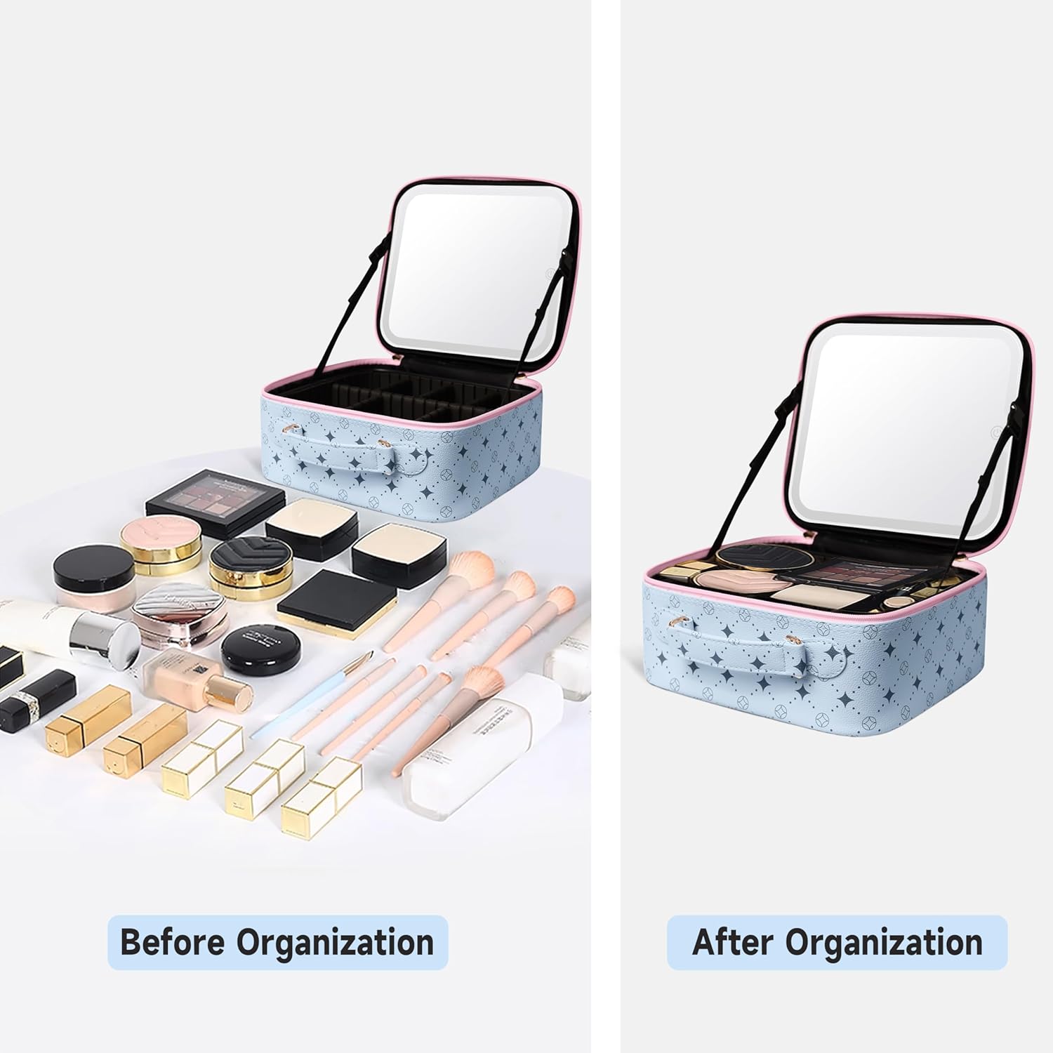 - ADJUSTABLE DIVIDERS: The inner layer of the cosmetic case is designed with adjustable dividers, you can flexibly adjust the position of the dividers according to the size and shape of different cosmetics. This not only keeps your cosmetics organized, but also maximizes the use of case space.