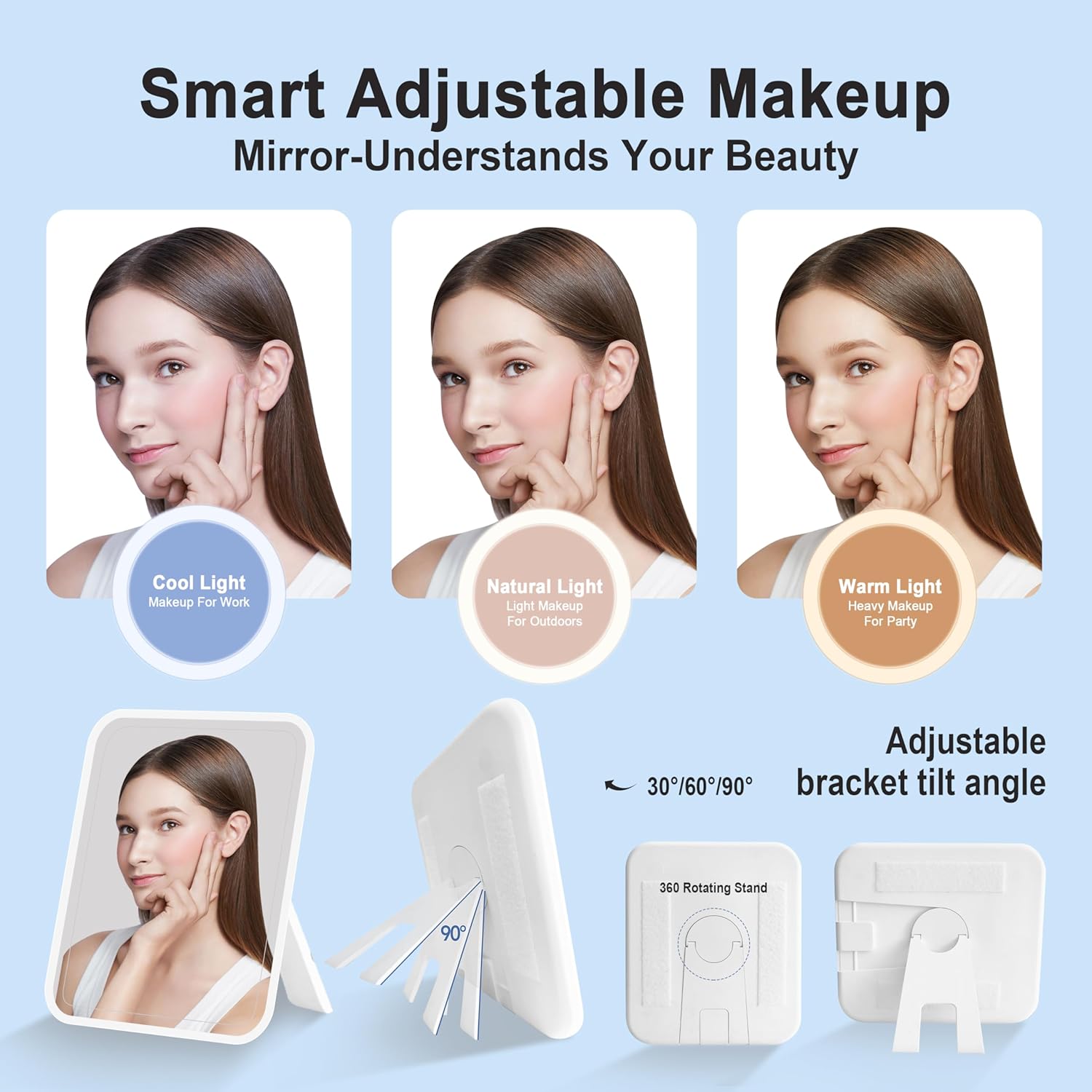 - 360 DEGREE ROTATING MIRROR: The mirror is designed to be flexible and supports 360 degree rotation. No matter from which angle you want to observe your makeup or need to adjust the direction of the mirror, it can be easily realized.