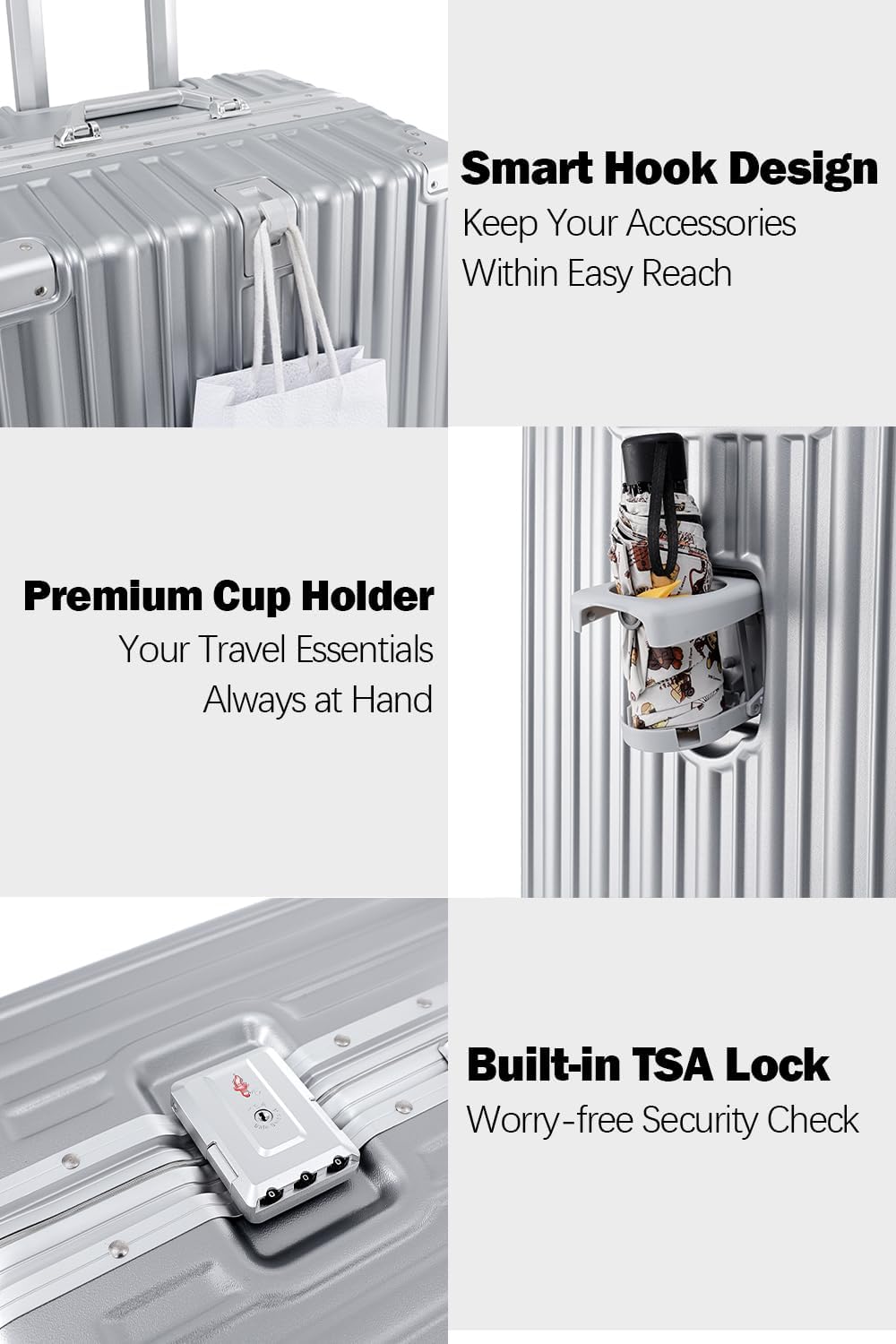 - SECURE ALUMINUM FRAME: Say goodbye to broken zippers with our zipperless hard shell luggage. Featuring a sturdy aluminum frame and easy-to-use latches, this suitcase offers better security and smoother access to your belongings.