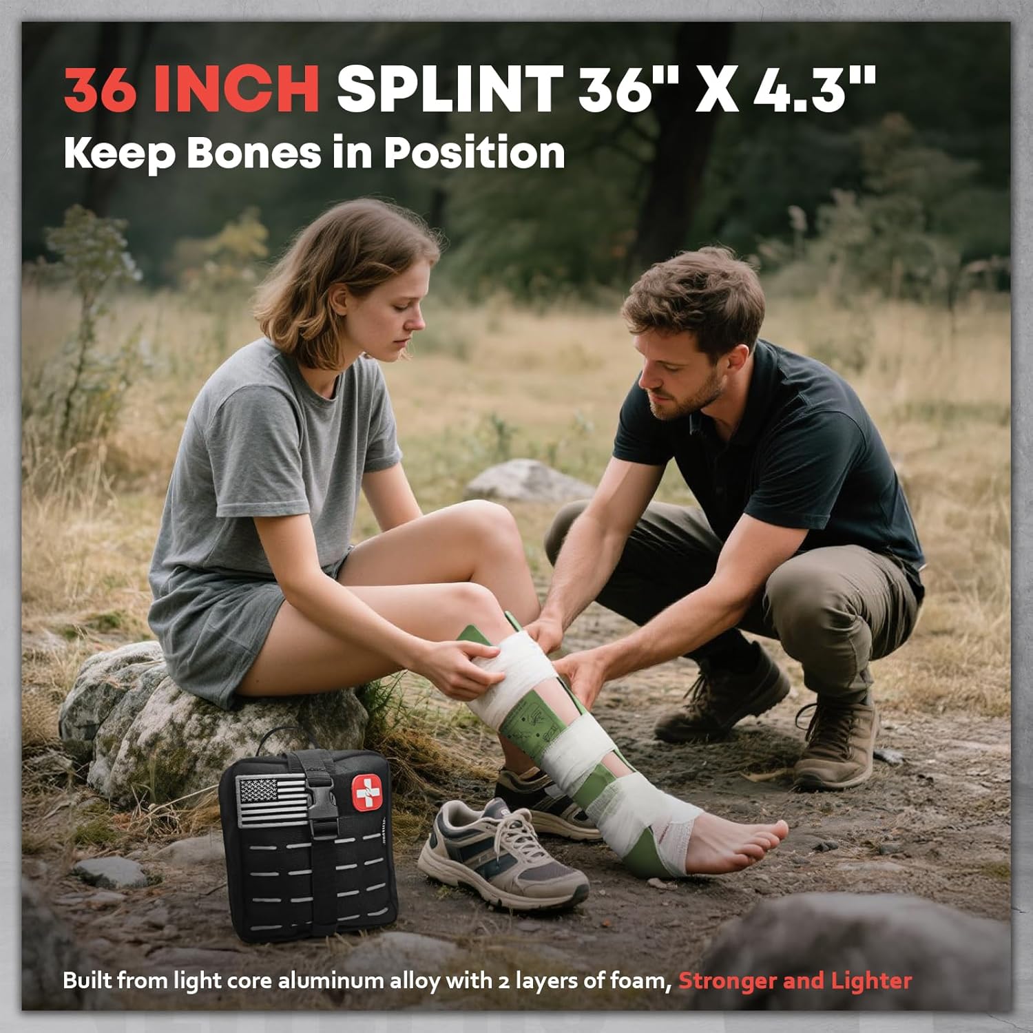 - Professional Survival kit - Equipped with military tourniquet, compression bandage, hemostatic gauze,chest seals trauma trauma scissors and 36” splint, ABD pad for severe bleeding, fractures and emergencies. IFAK compliant,. Our first aid kits are ideal for camping, outdoor adventure, military, combat lifeguards, first responders, outdoor enthusiasts and more!