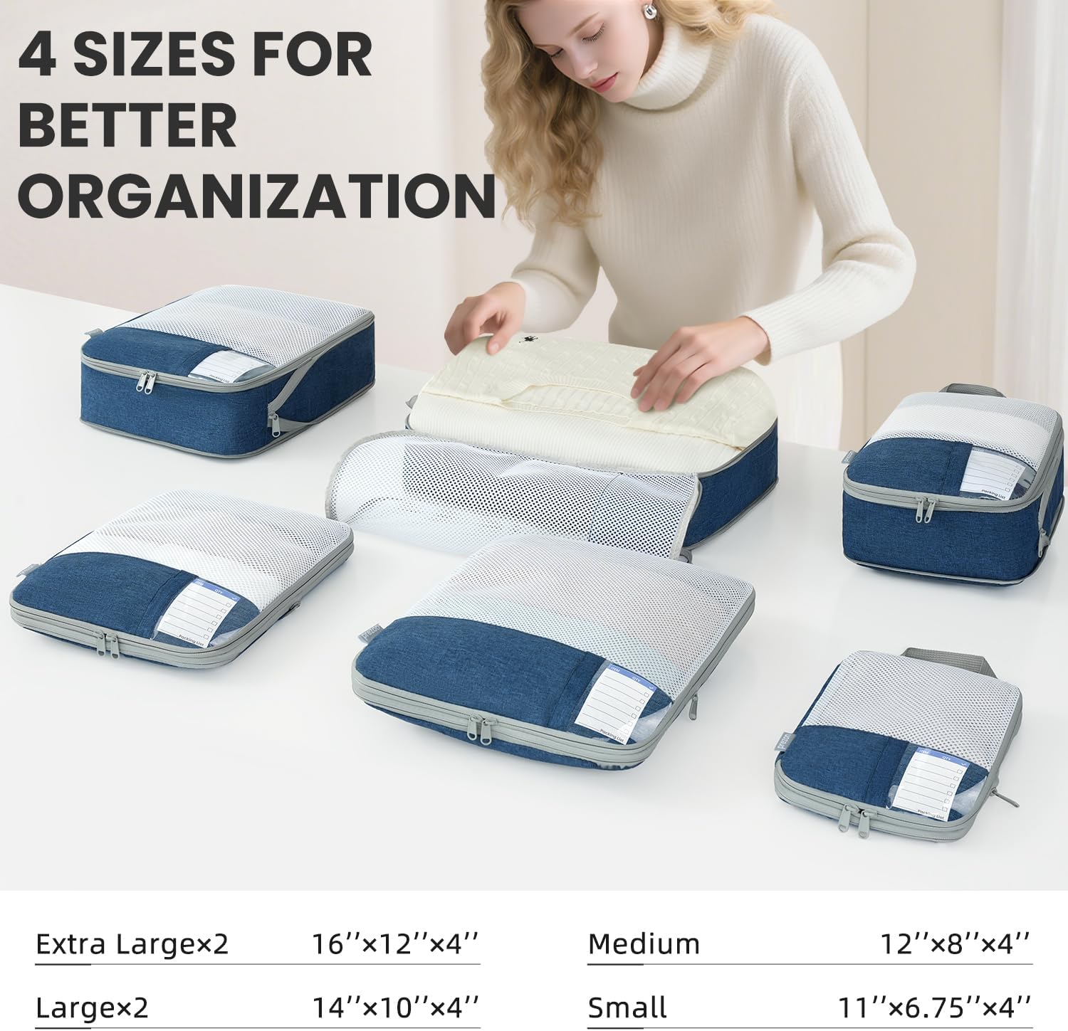 8 Set/6 Set/4 Set Compression Packing Cubes for Travel, Lightweight Vacation Travel Essentials, Travel Accessories for Suitcase Organizer Bags Set, Durable Luggage Organizer