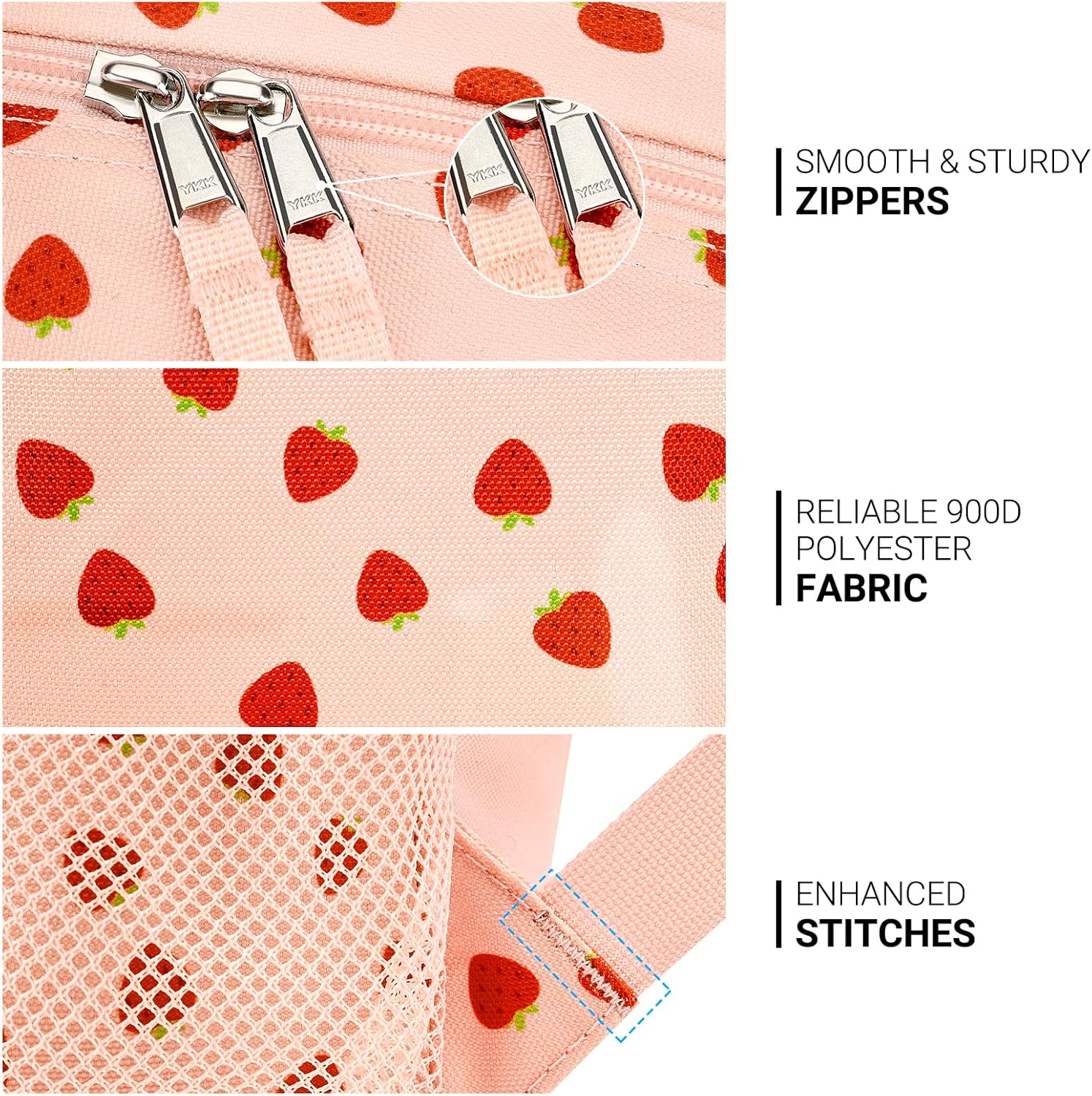 ZORFIN 26L Backpack for College, and Travel: Water Resistant Bookbag - Heart-shaped Strawberry pink