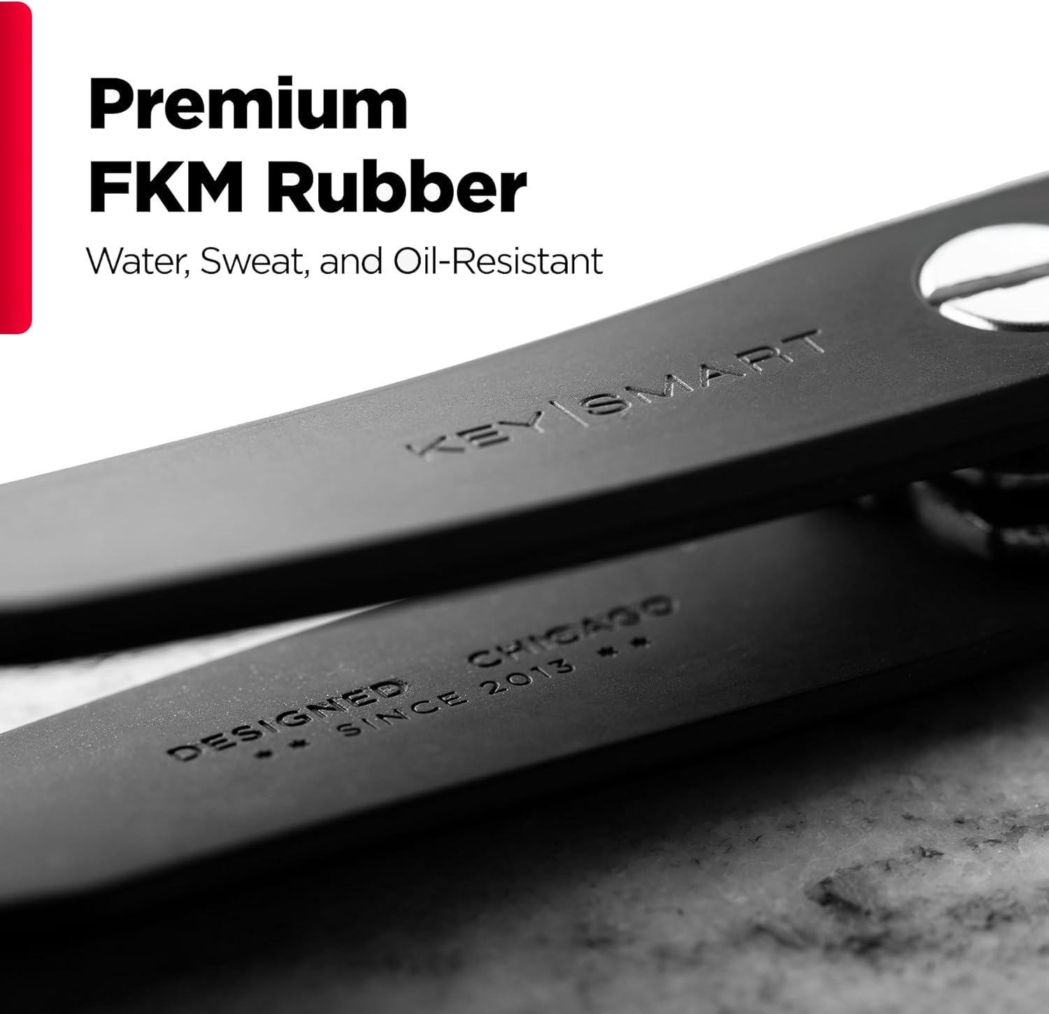 - Premium FKM Rubber Material. A revolutionary new material that’s water, sweat, dust, and oil resistant. Durable and lightweight.