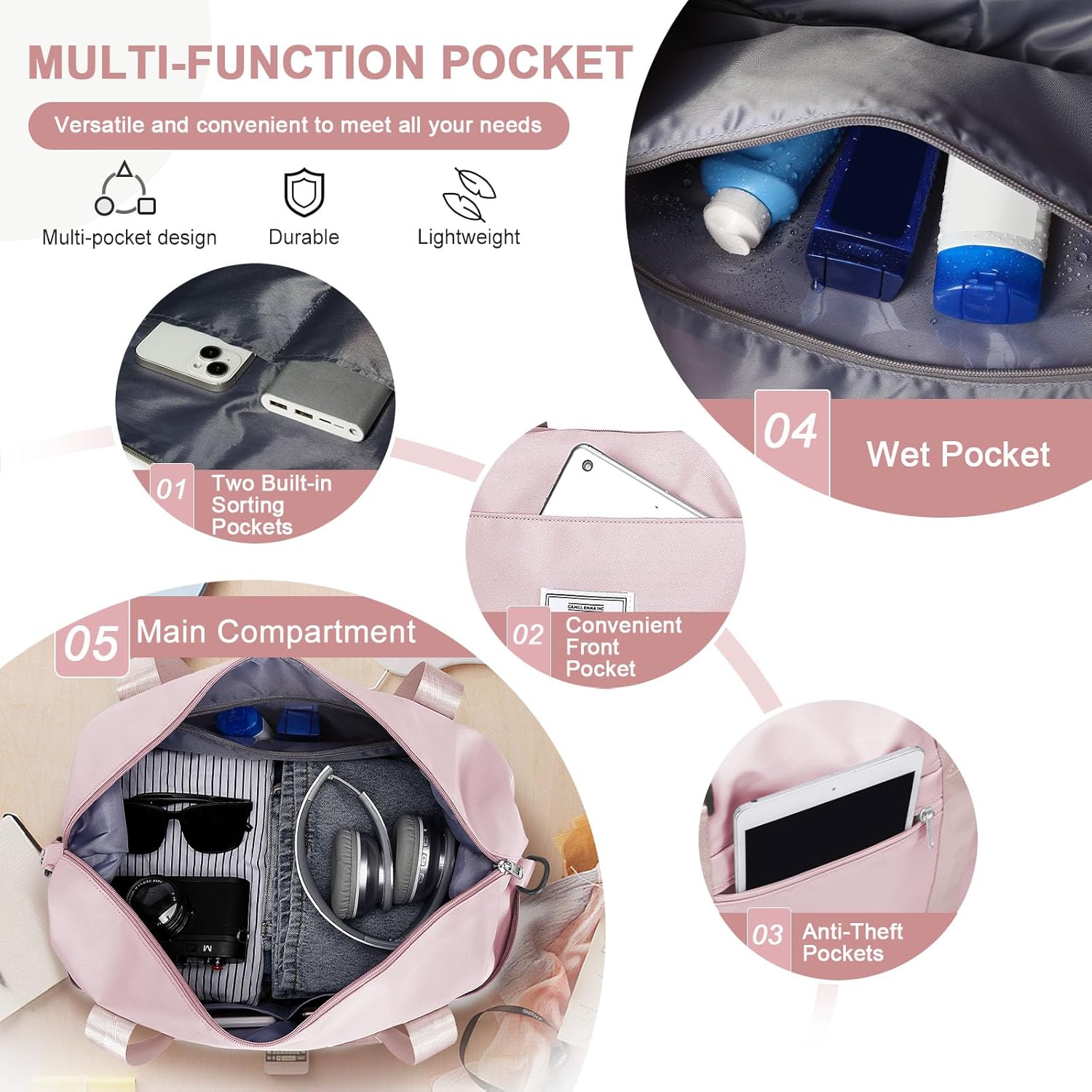Travel Duffel Bag, Sports Tote Gym Bag, Shoulder Weekender Overnight Bag for Women