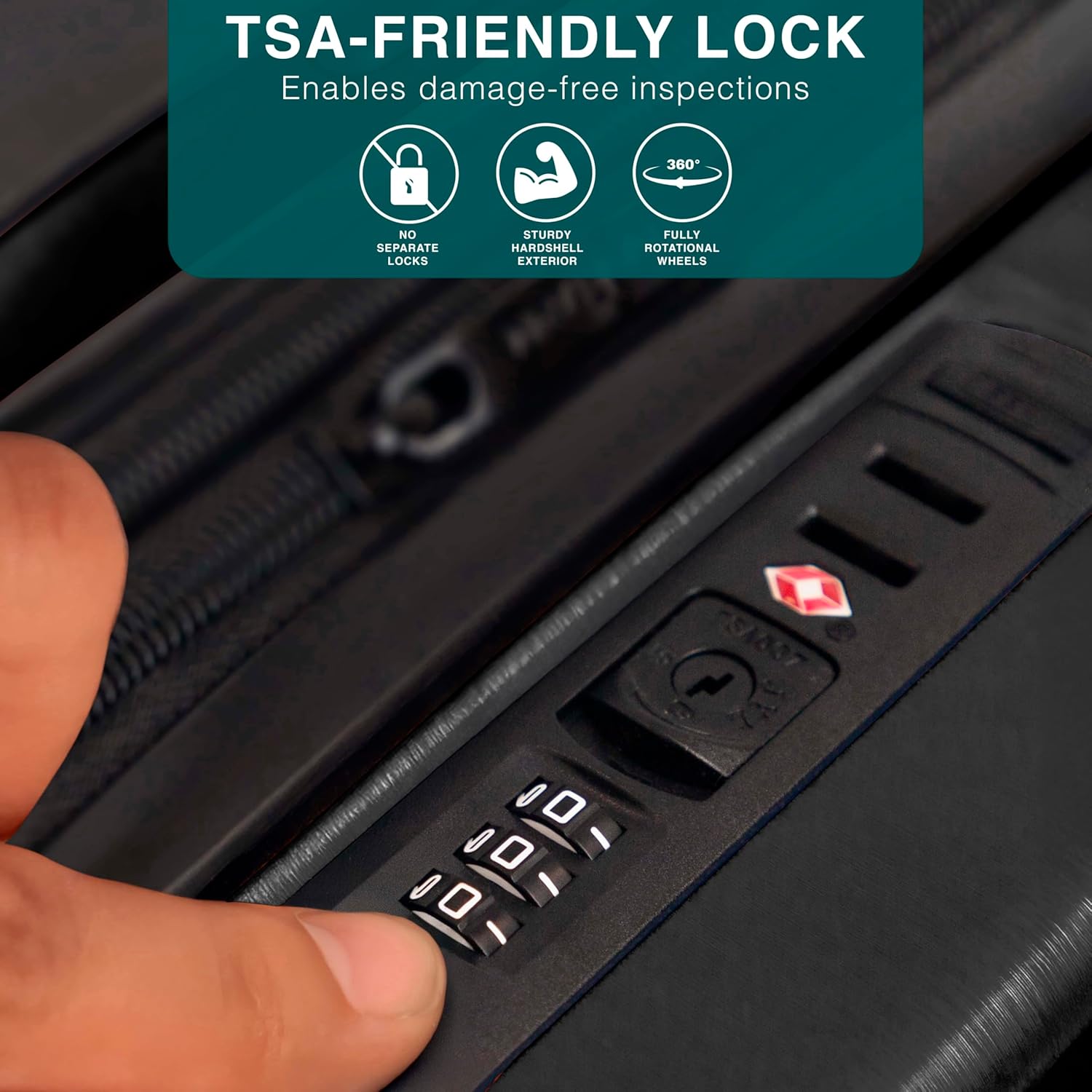 - Travel Luggage with Spinner Wheels: Our 24 inch luggage with spinner wheels provides smooth 360° movement. This rolling suitcase, hardshell luggage includes a telescoping handle, stainless steel name tag, and TSA lock.