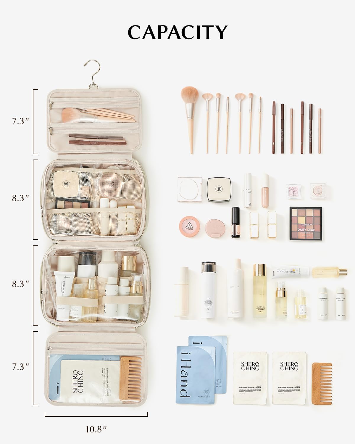 - Smart Organization – Multiple compartments with transparent panels let you find items quickly and easily. Includes a 360° rotating metal hook for convenient hanging in bathrooms, hotel rooms, or closets—ideal for on-the-go access.