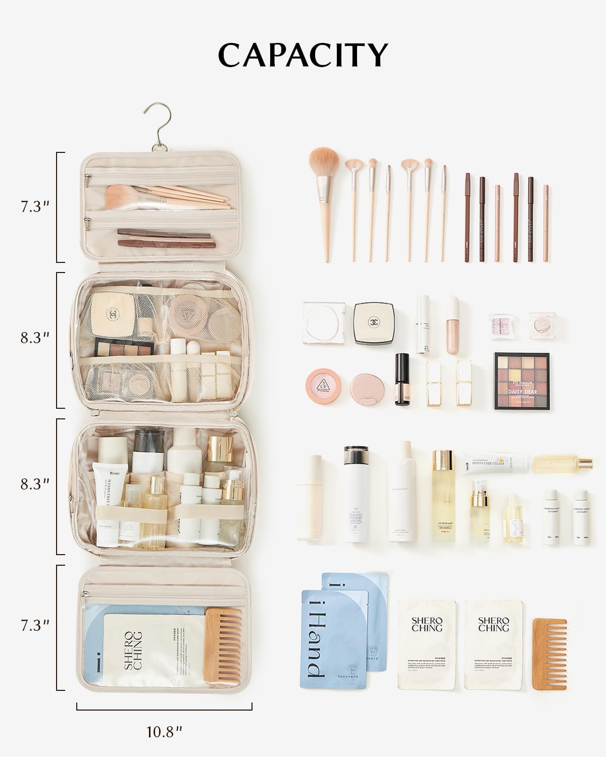 - Smart Organization – Multiple compartments with transparent panels let you find items quickly and easily. Includes a 360° rotating metal hook for convenient hanging in bathrooms, hotel rooms, or closets—ideal for on-the-go access.