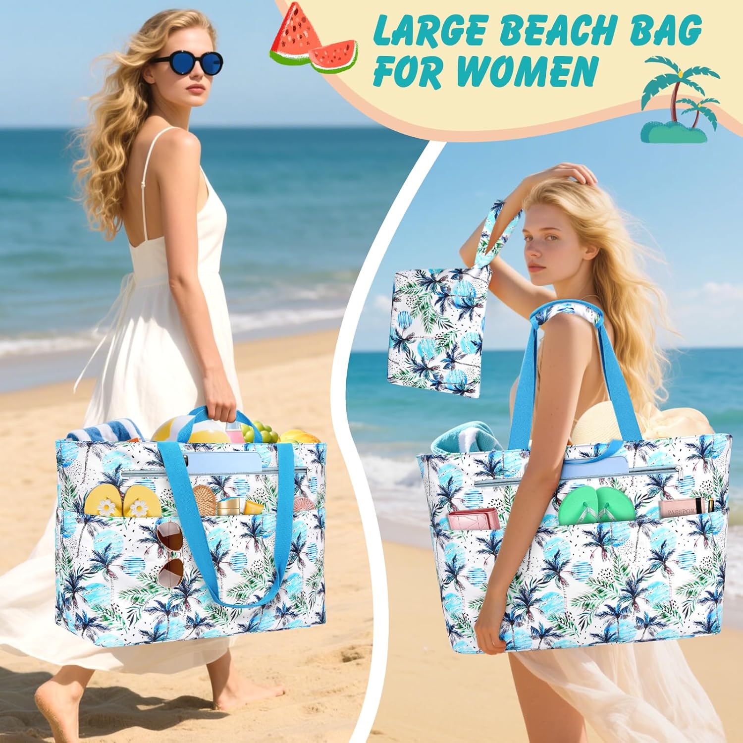 Extra Large Beach Bags for Women, Waterproof Sandproof Beach Tote Bag Zipper Foldable Swim Pool Bag with Wet Pocket