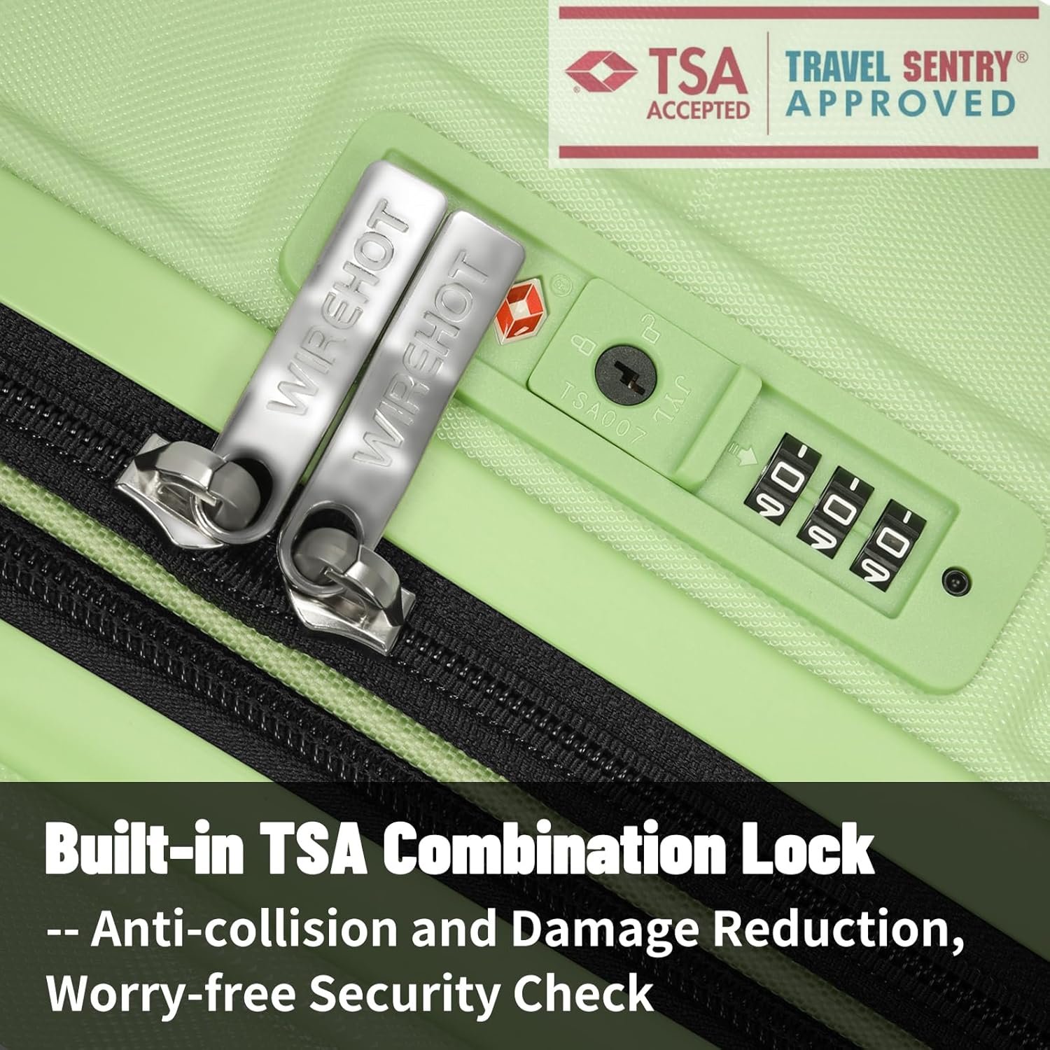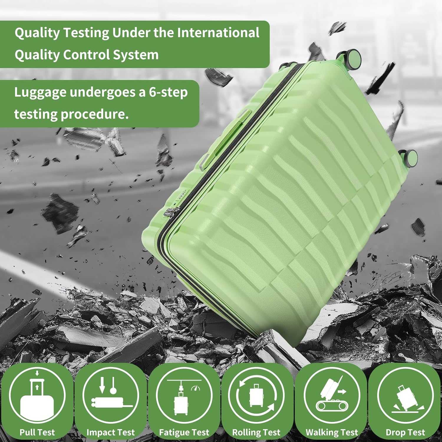 5-Piece Luggage Set, Lightweight ABS+PC Hard Shell Suitcase with YKK Zipper & TSA Lock for Family, Avocado Green, 14in/18in/20in/24in/28in