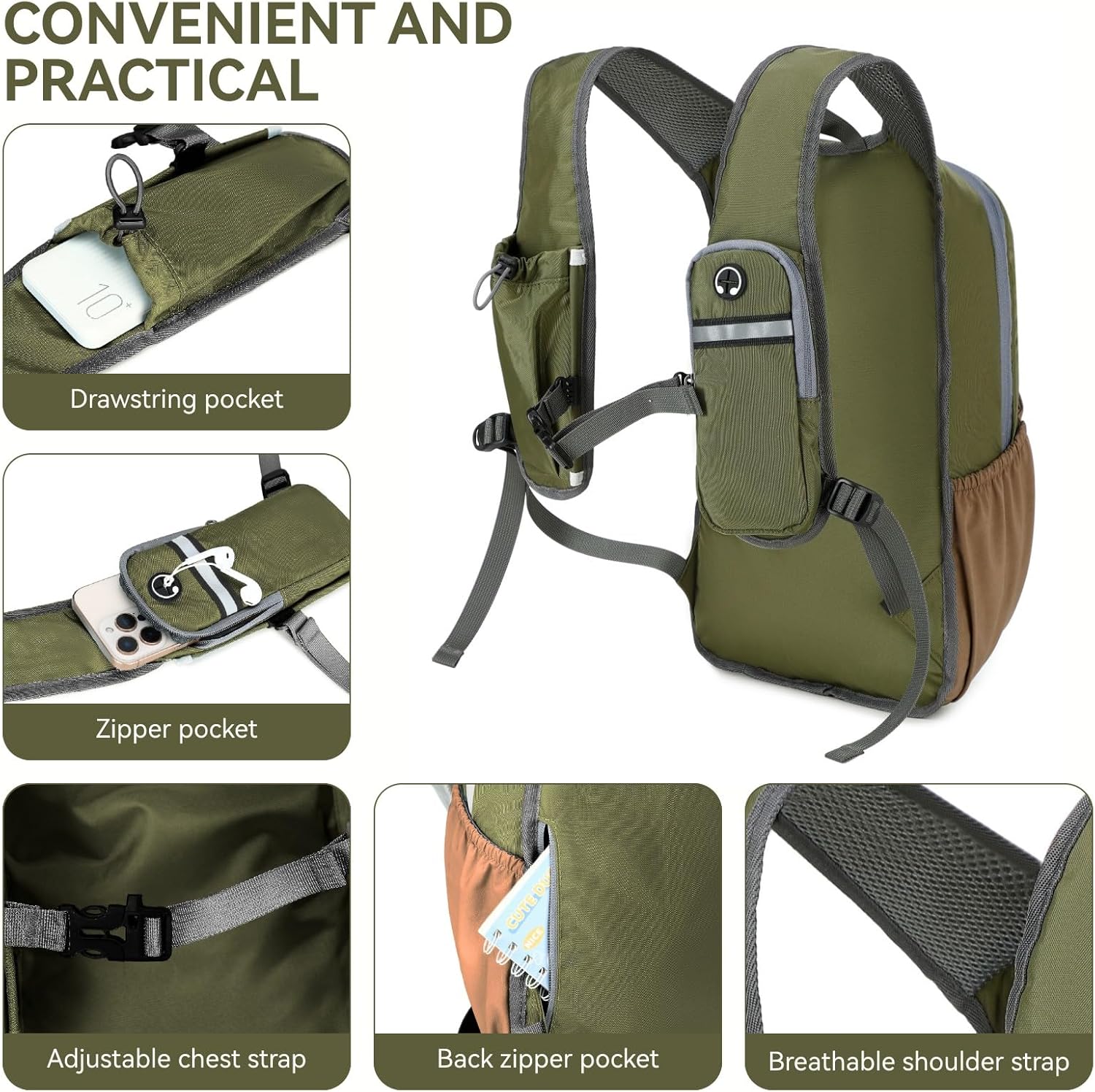 - Unique Shoulder Strap Design: The ergonomic shoulder straps feature a secure zippered pocket (fits phones up to 7”) and a drawstring pocket for quick access to essentials like keys, cards or snacks. Save yourself the hassle of taking off your backpack while hiking. Whether you're hiking, biking or traveling, these smart pockets keep your valuables safe and within reach.