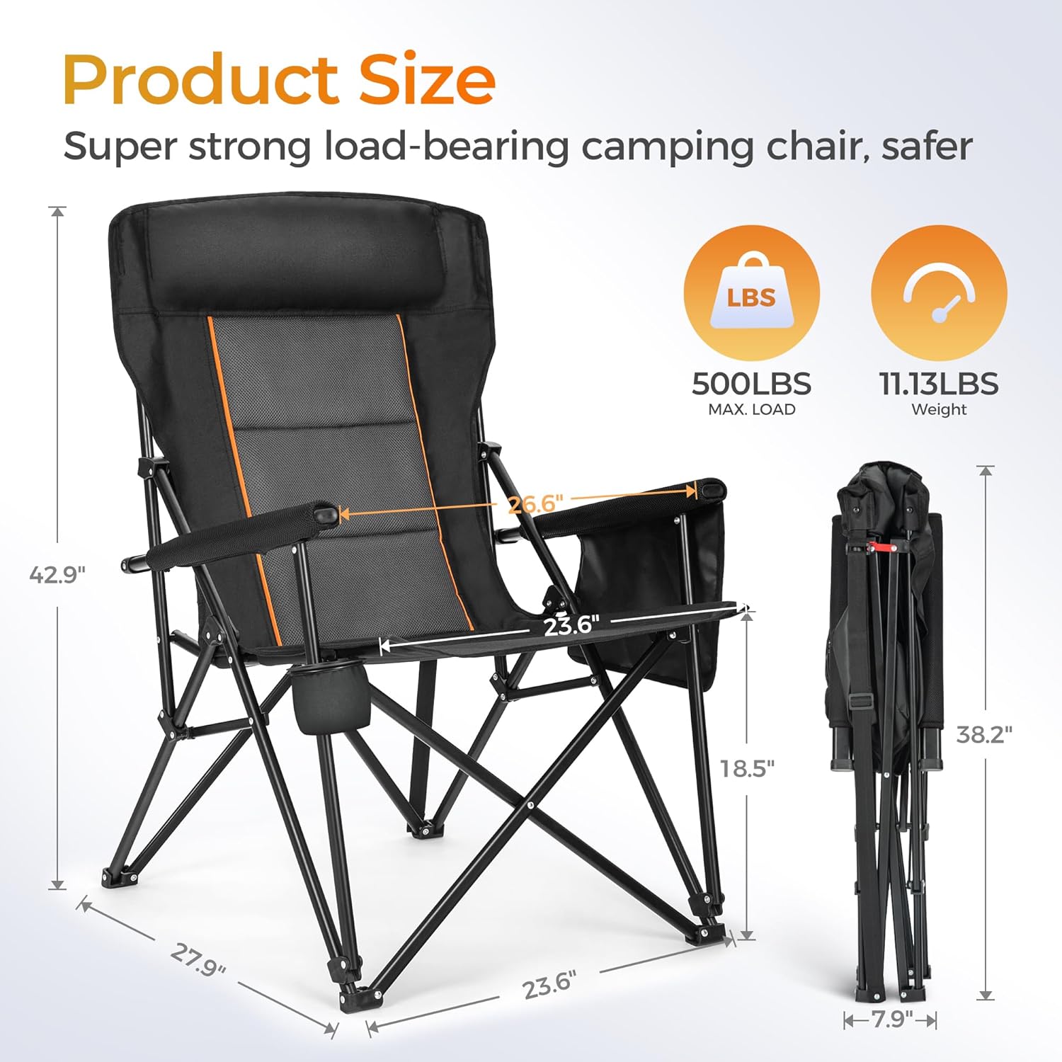 - Wide and Comfortable: The ALPHA CAMP XL Camping Chairs for adults are the ideal choice of outdoor camping chairs with larger seat surface and higher backrest than regular camping chairs for camping, hiking, or any outdoor activity that requires a comfortable, durable seat.