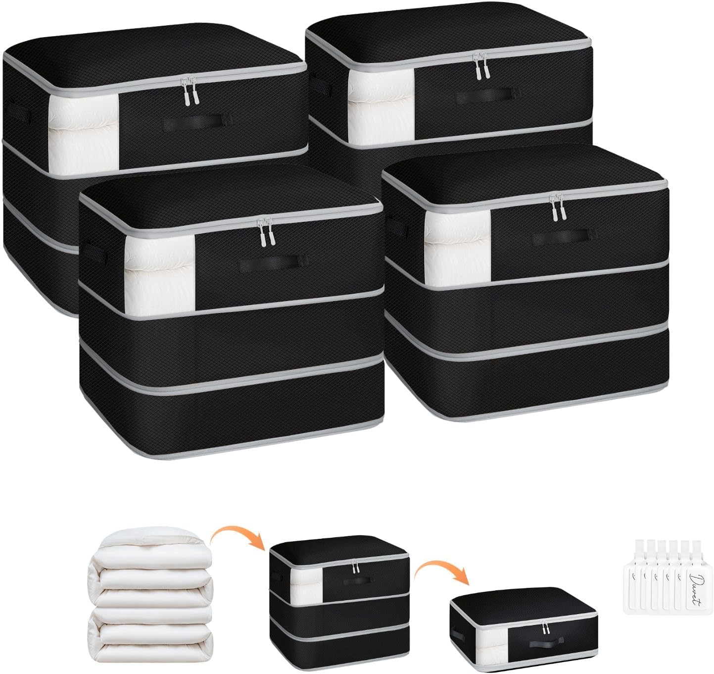 4 Pack Compression Storage Bags - 110L Large Capacity Comforter Storage Bag, 3-Layer Washable Ultra Space Saving Self Compression Organizer Space Bags for Blanket, Sweater, Sheet, Black
