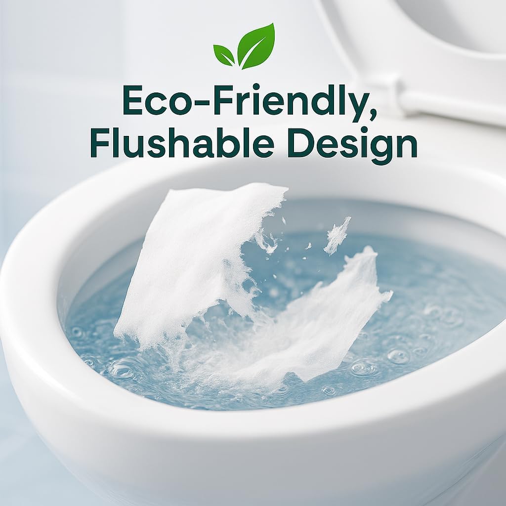 - Flushable & Septic-Friendly – Designed to dissolve quickly in water without clogging, safe for most home toilets and public restrooms. Strong enough for use, yet breaks down fast after flushing.