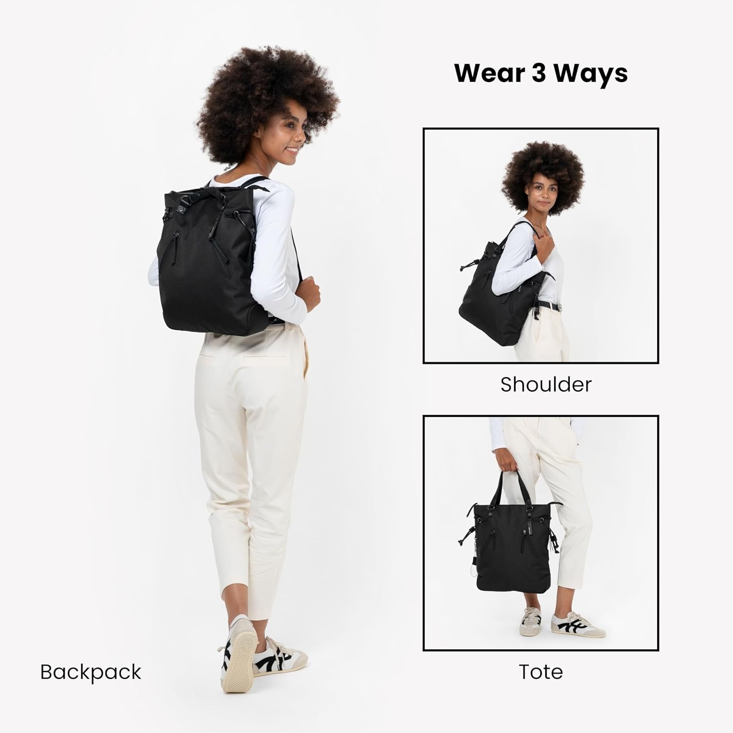 Sherpani Tempest, Anti Theft Convertible Backpack Tote, 14L Travel Backpack, Travel Gifts for Women, Handbags, RFID Protection, Metal Hardware, Fits 15” Laptop (No Sleeve) (Carbon)