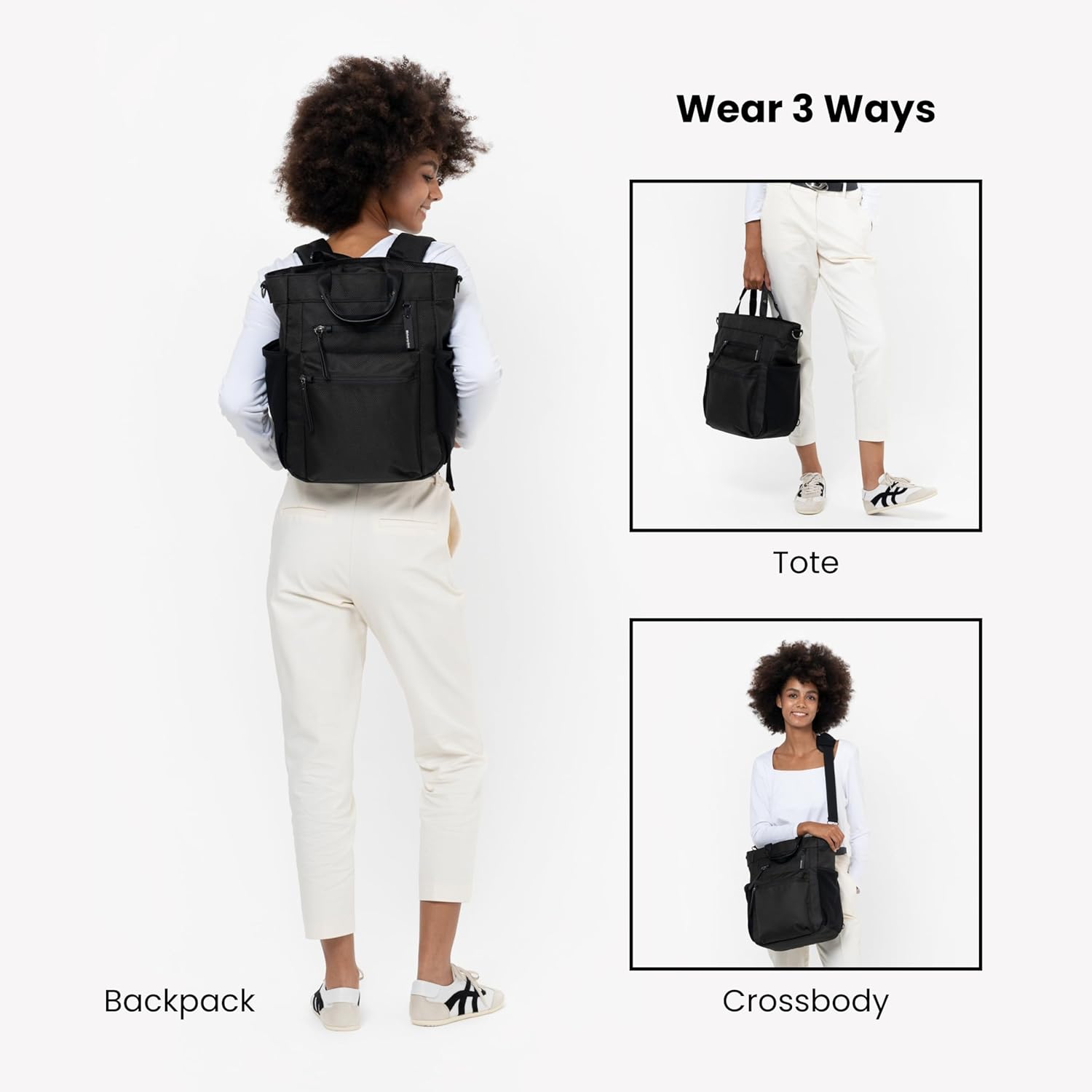 Sherpani Soleil, Anti Theft Convertible Backpack, 3 in 1 Tote Bag, Cross Body Purse, 18L Travel Backpack, Travel Gifts for Women, RFID Protection, Metal Hardware Fits 13” Laptop (Carbon)