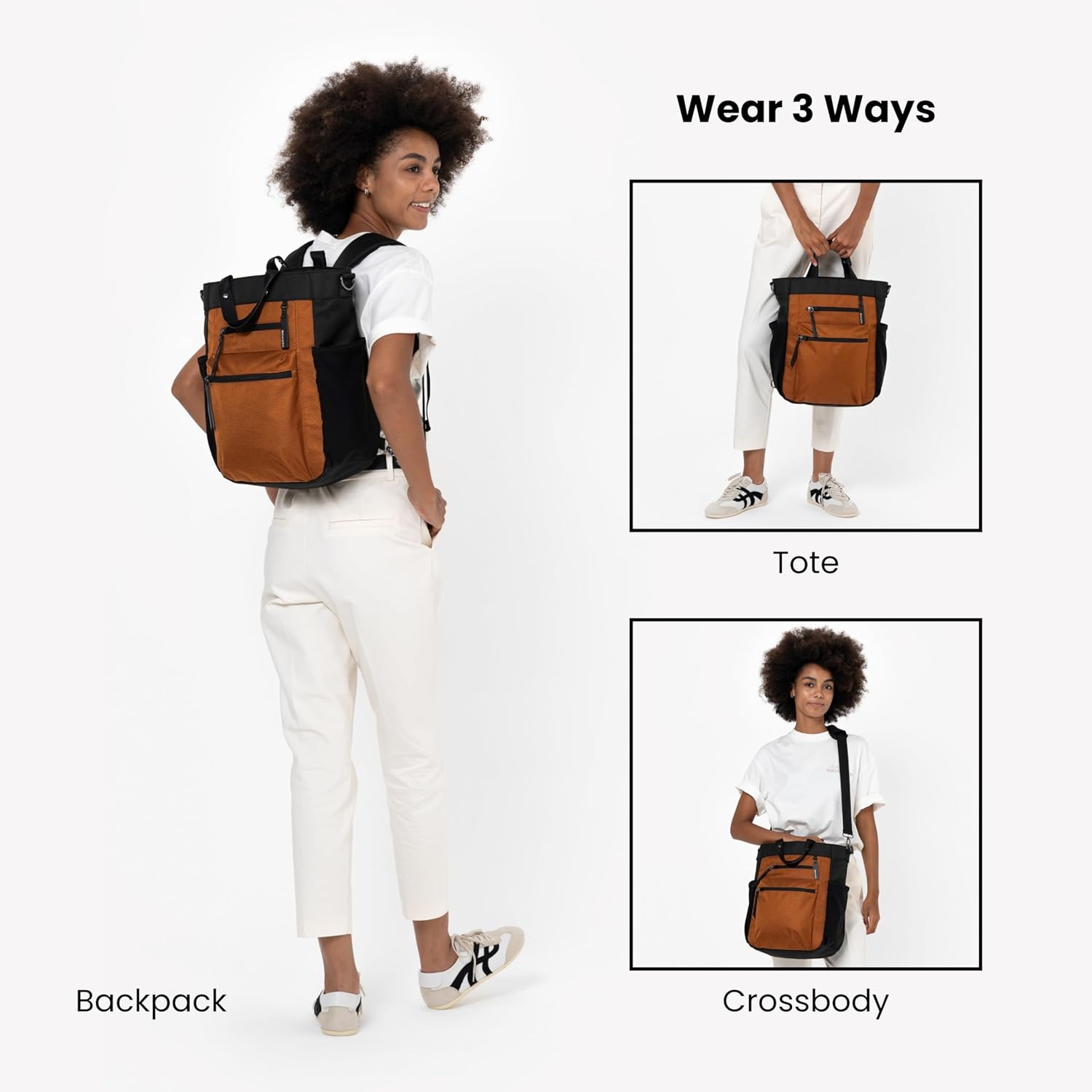Sherpani Soleil, Anti Theft Convertible Backpack, 3 in 1 Tote Bag, Cross Body Purse, 18L Travel Backpack, Travel Gifts for Women, RFID Protection, Metal Hardware Fits 13” Laptop (Morocco)