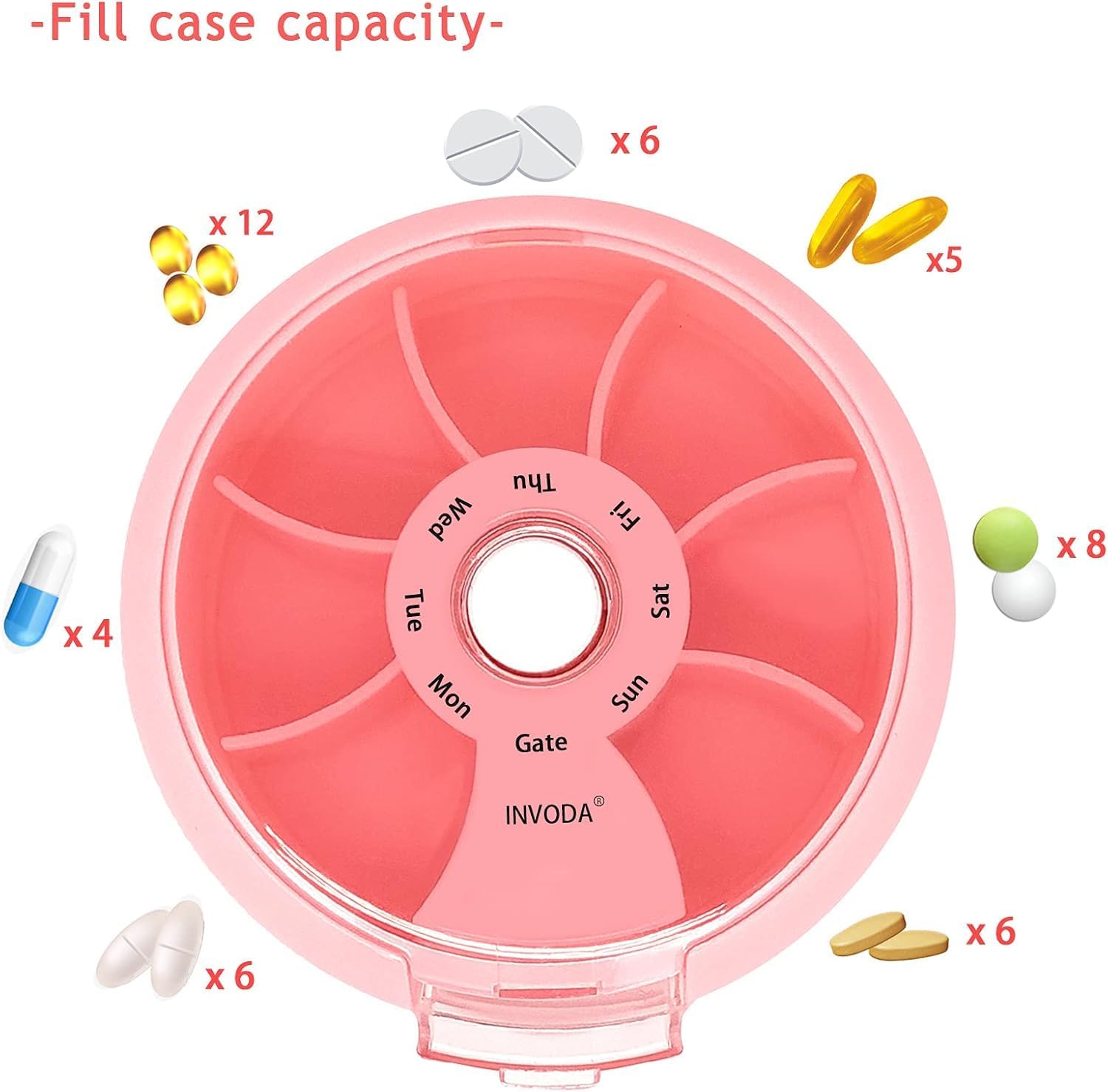 8PCS INVODA Weekly Pill Organizer 7 Compartment Rotating Pill Box for Daily Medication & Vitamins - Portable Travel Pill Case Fish Oil Supplements Vitamins Organizer