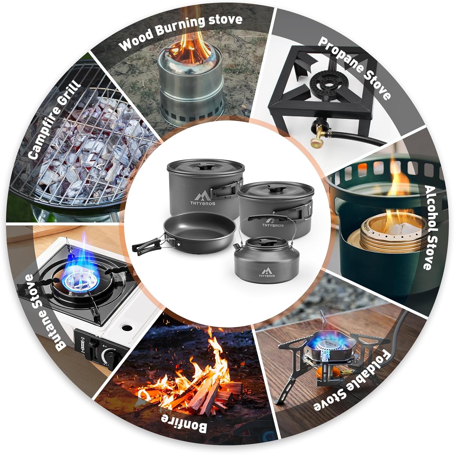 - Perfect for 2-4 Campers: Cook pancakes on the non-stick pan, boil water in the kettle, serve meals on unbreakable plates. Ideal for backpacking, car camping, RV trips, and picnics.