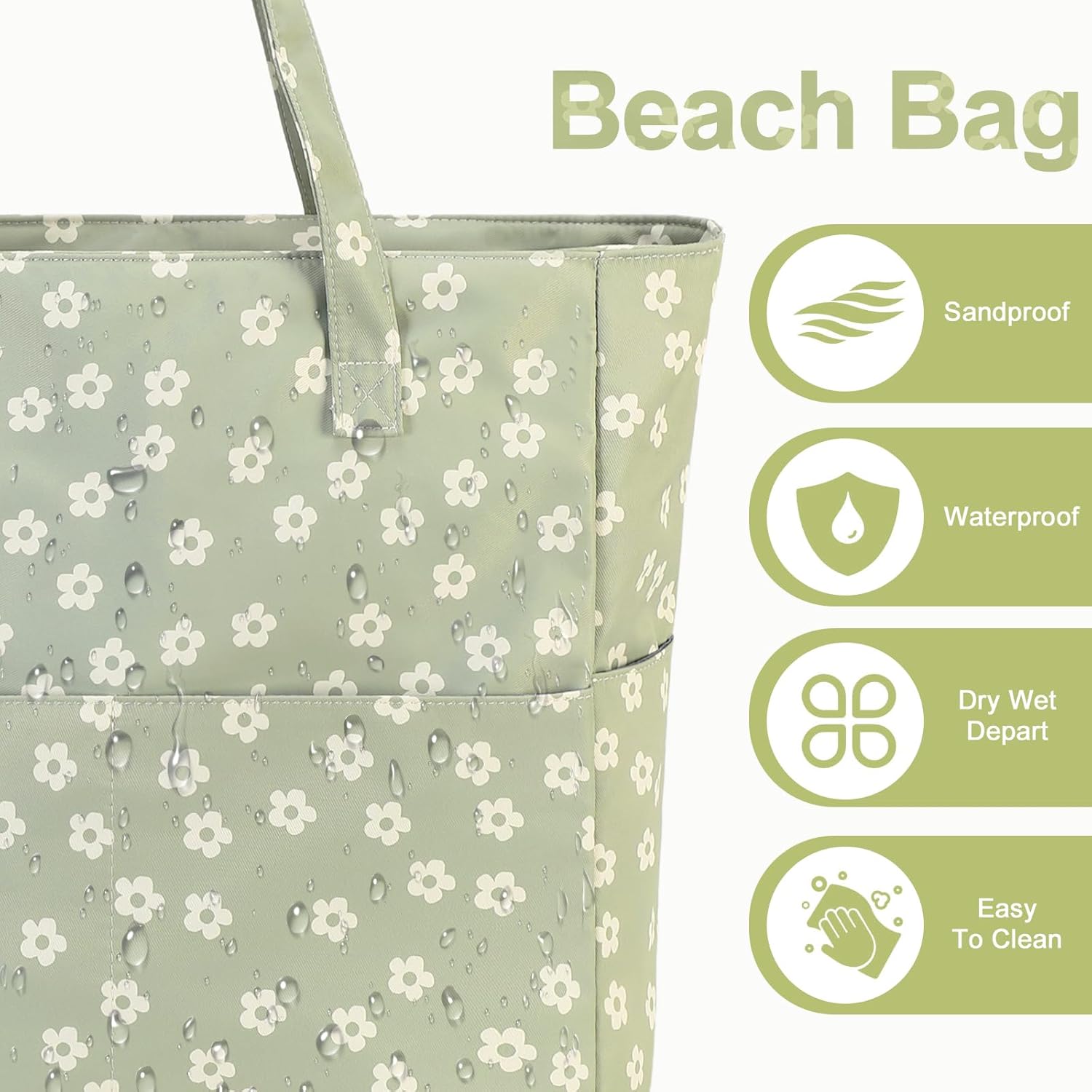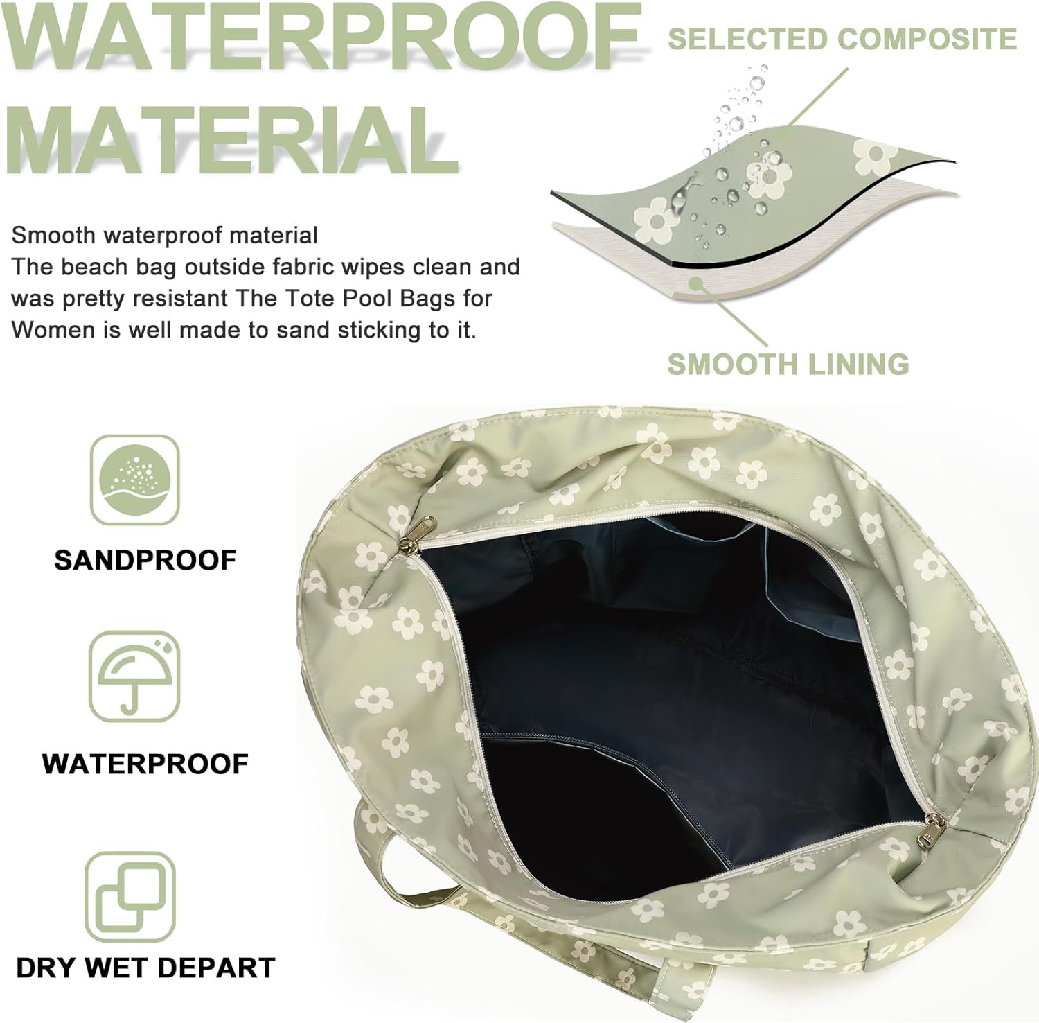Waterproof Beach Tote Pool Bags for Women Ladies Extra Large Gym Tote Carry On Bag With Wet Compartment for Weekender Travel