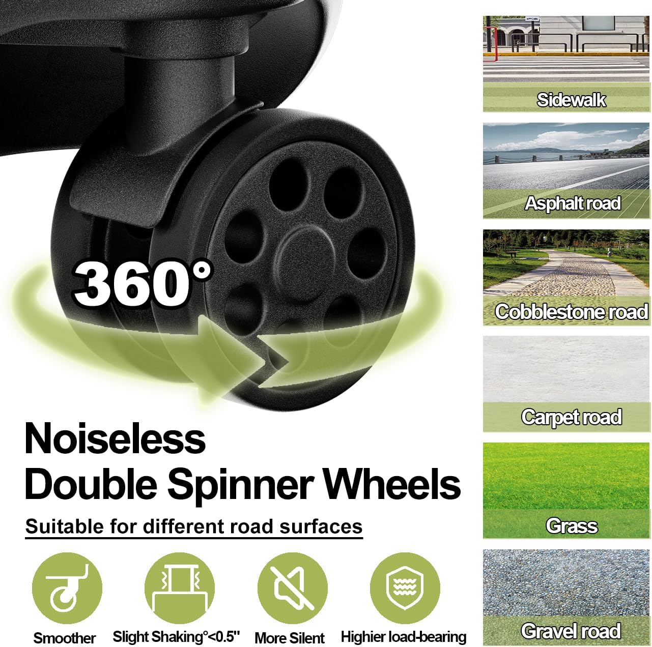 - 【360° Spinner Double Wheels】Glide through your adventures with grace using the 4 Universal Wheels mounting spinner luggage. And it get benifits from PC+ABS hard shell that makes it solid and anti-scratch,keeping your suitcase intact on your trips.