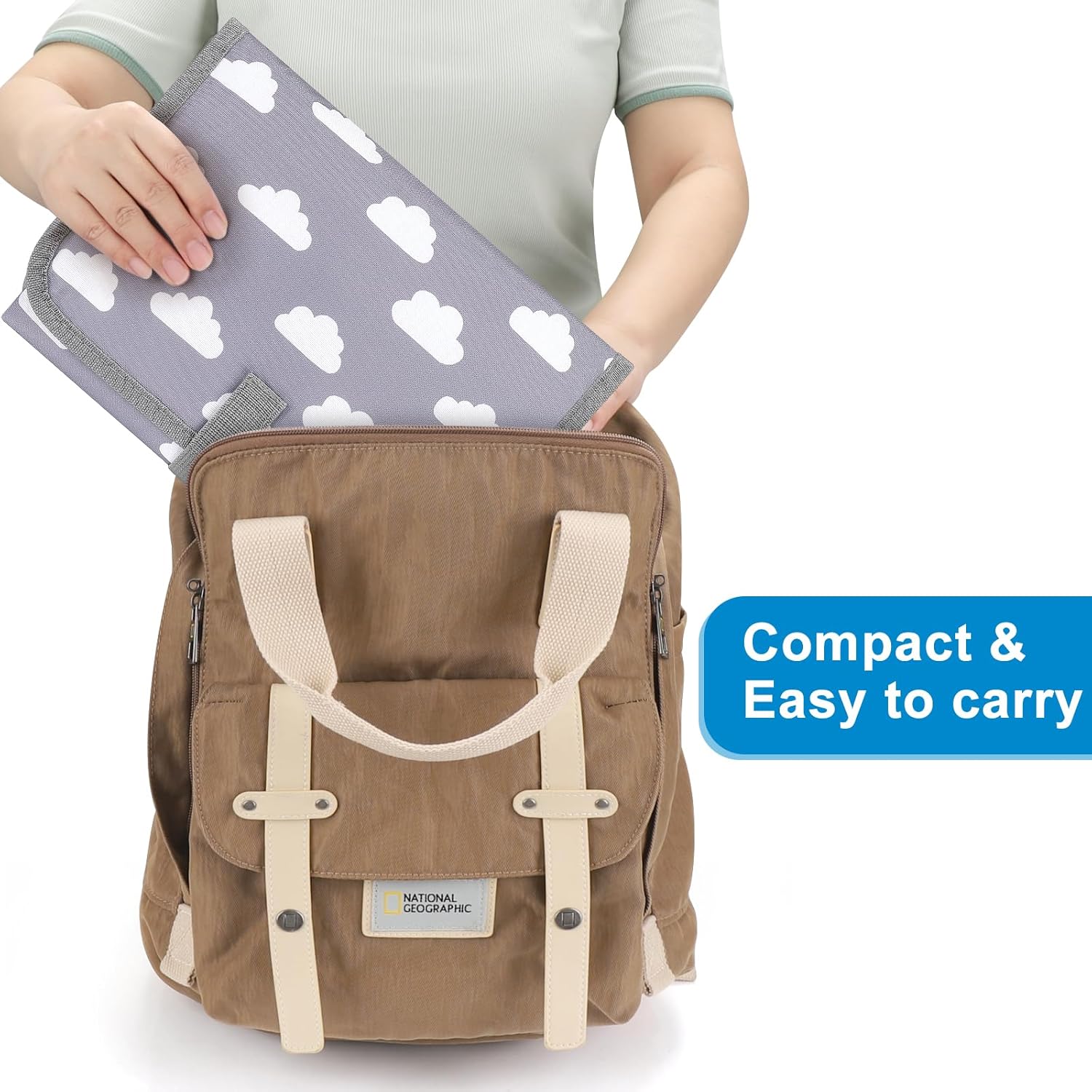 - Foldable & Compact Size: Our travel diaper changing mat has perfect size, making it convenient for moms to quickly fold and organize while taking care of their babies. After folding, it can be easily placed in the bag and carried.