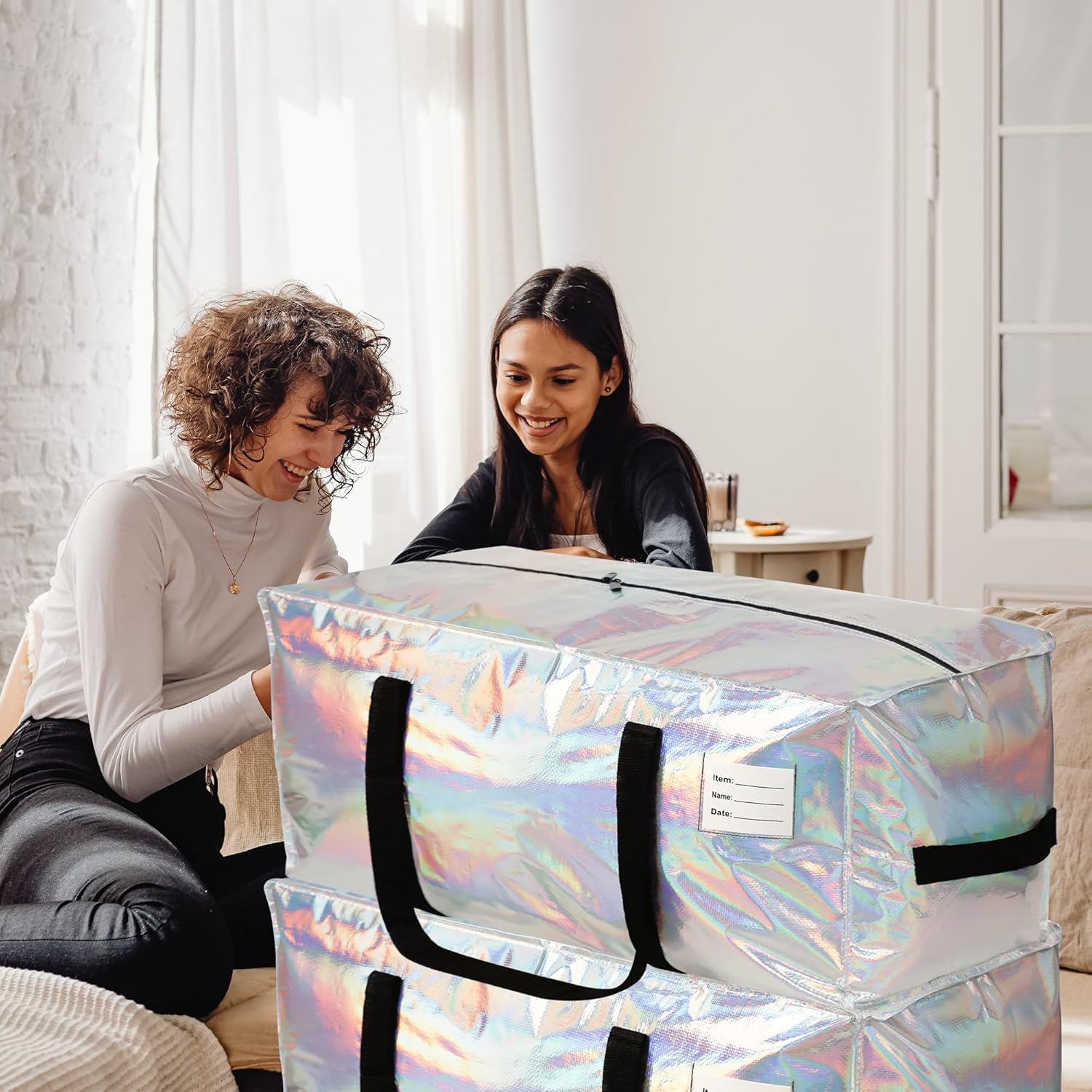 8 Pack Heavy Duty Moving Bags 24-Gallon Extra Large Waterproof Foldable Clothing Storage Totes Bags with Zipper,Reinforced Handles,Packing Moving Boxes for Dorm & Seasonal Storage,Iridescent