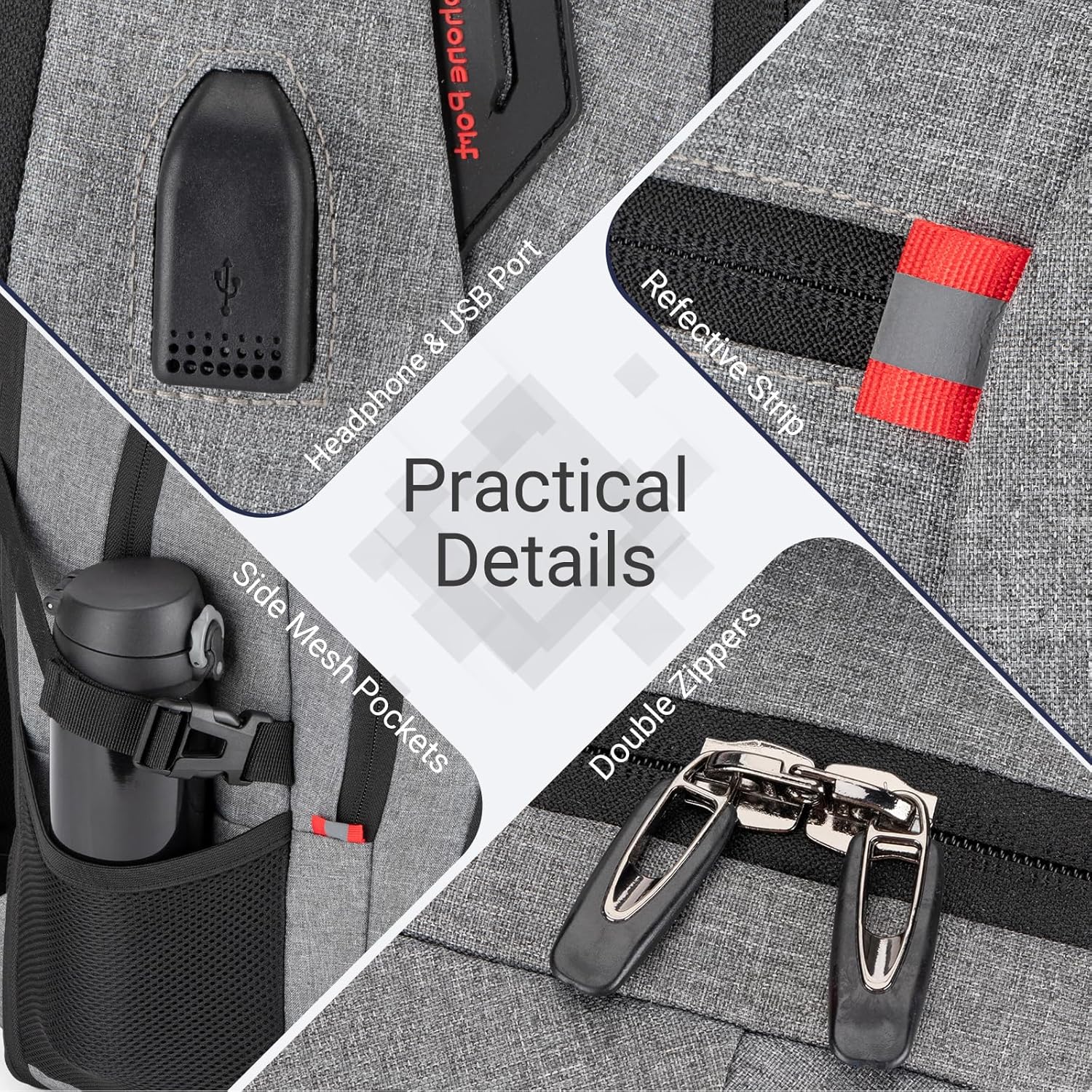 - đăUSB Charging Port & PRACTICALăA built-in USB charging port with a detachable cable lets you power up your phone or tablet on the goâjust connect your portable charger (not included) for seamless charging. Meanwhile, a discreet audio port on the side threads headphones or a charging cable through effortlessly, keeping cords organized and your devices accessible without digging through the main compartment