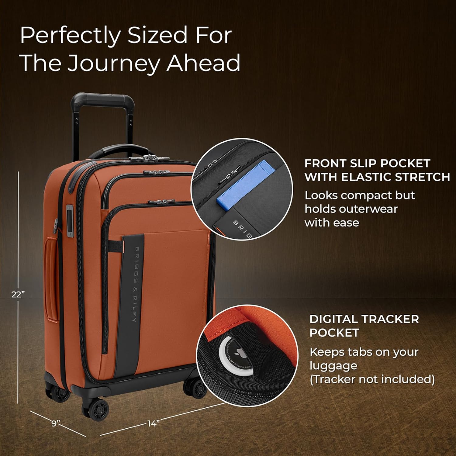 Briggs & Riley Domestic 22" Carry On Expandable Spinner - Luggage for Travel, Suitcases with Wheels, Softside Rolling Bag for Men & Women - ZDX Collection, Canyon