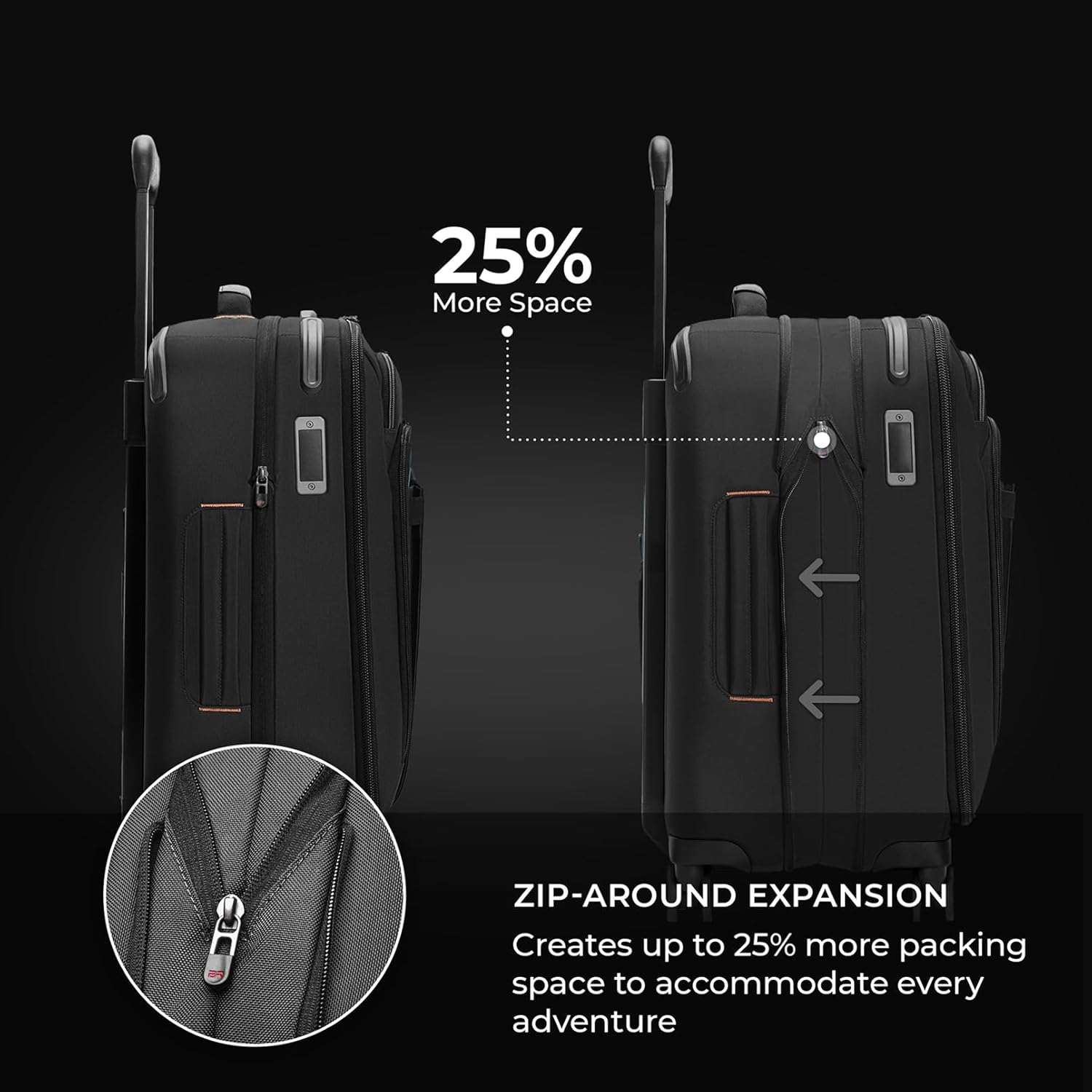 - 360 SPINNER WHEELS - Move smoothly in any direction with four shock-absorbing spinner wheels that provide a quiet, fluid glide through airports, train stations, and city streets