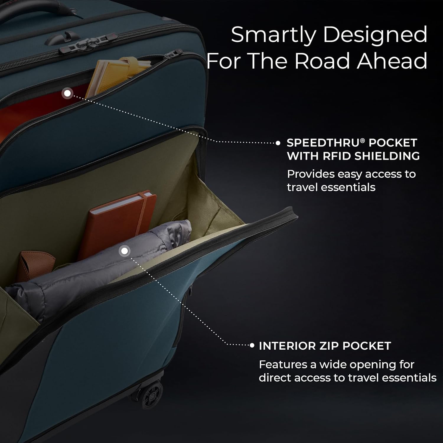 - 360 SPINNER WHEELS - Move smoothly in any direction with four shock-absorbing spinner wheels that provide a quiet, fluid glide through airports, train stations, and city streets