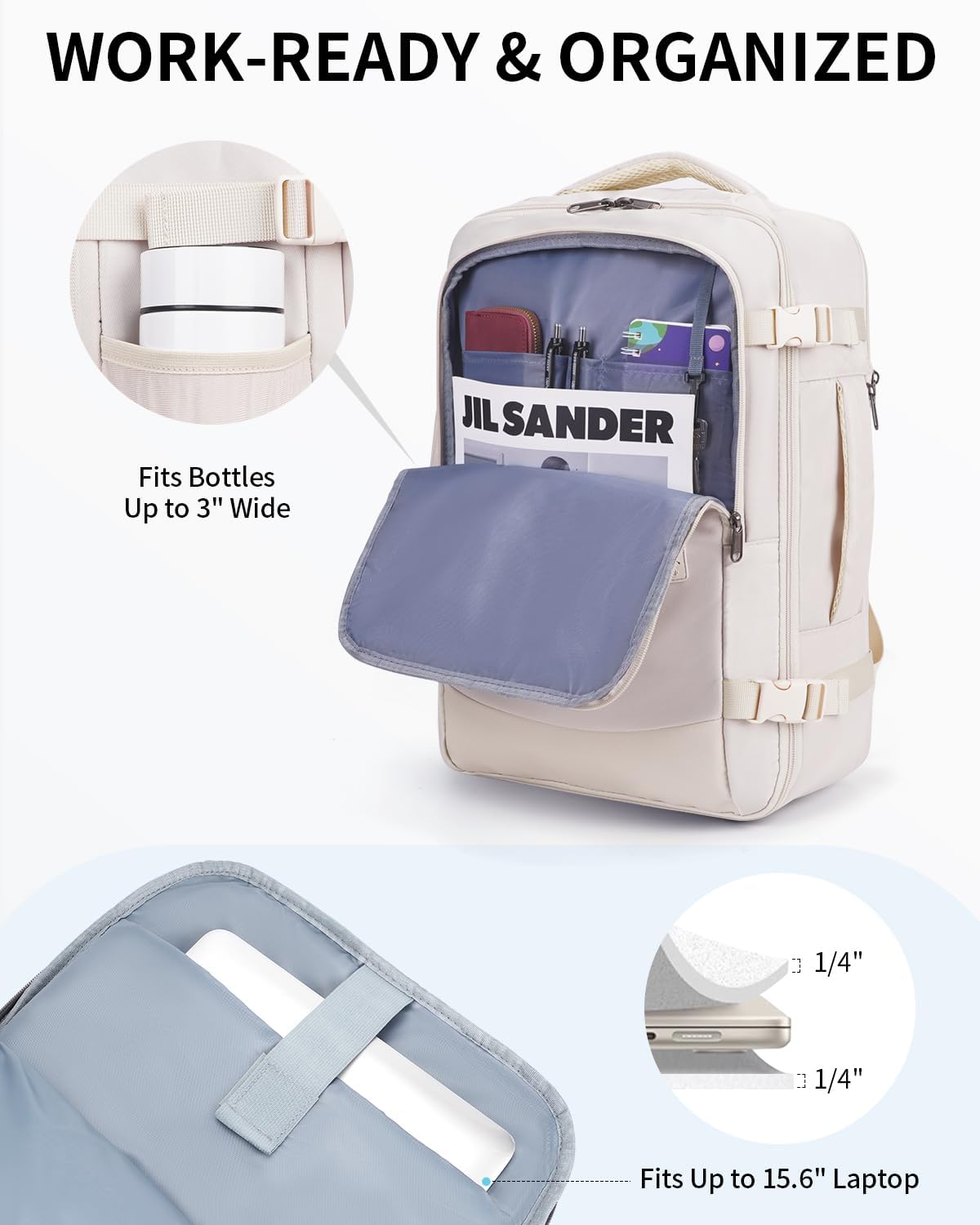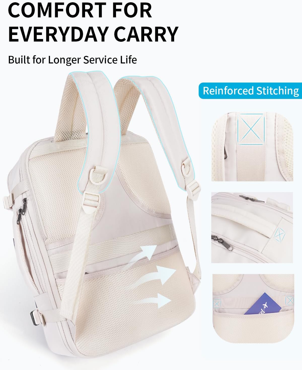ECOHUB 30L Carry on Travel Backpack for Men Women 18x14x8, 17 inch Expandable Airlines Personal Item Bag Water Resistant Laptop Backpack Flight Approved with USB Slot & Wet Pocket, Beige