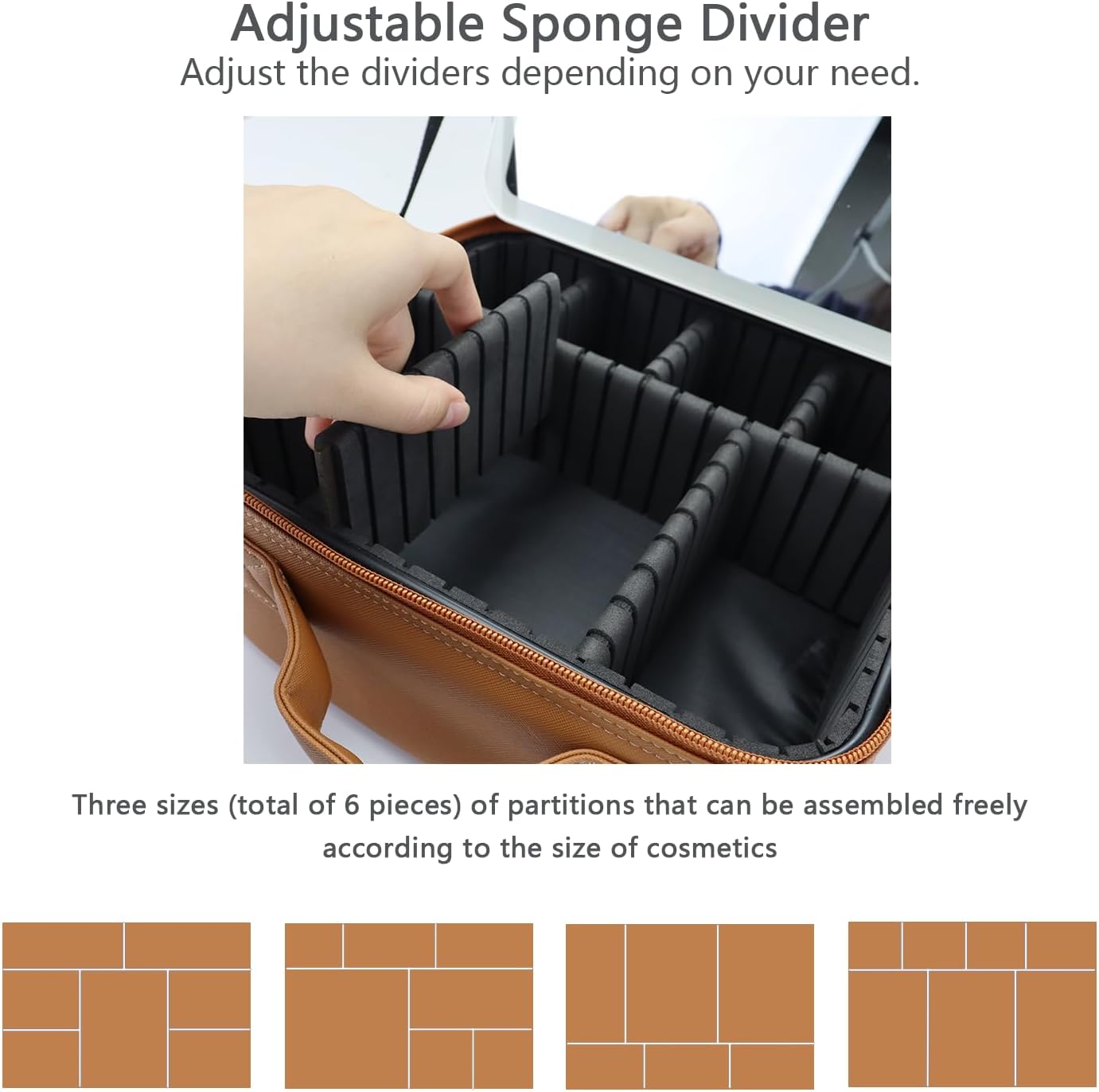 - 【walking powder room】the makeup bag with mirror is 10.3"x 9.1"x 4" and can hold most sizes and shapes of beauty makeup accessories, and the assembleable compartments are flexible enough to hold different sizes