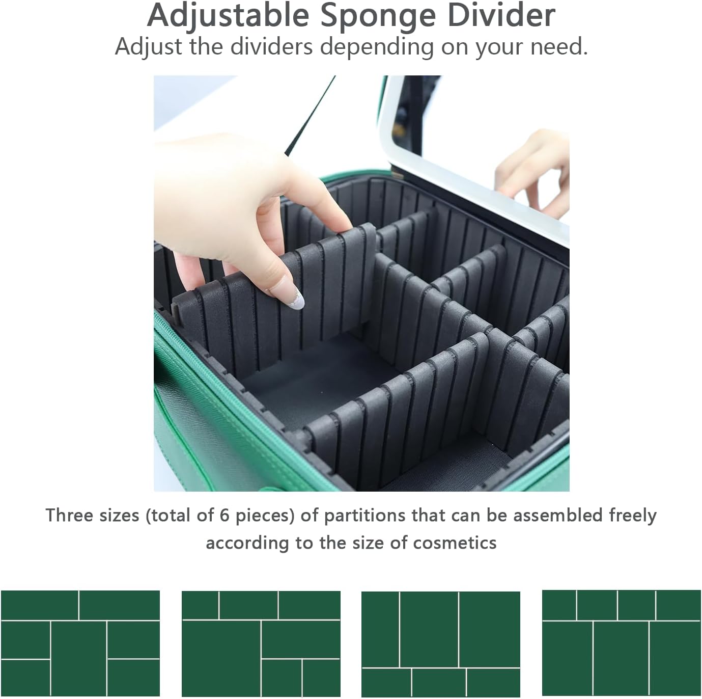 - 【walking powder room】the makeup bag with mirror is 10.3"x 9.1"x 4" and can hold most sizes and shapes of beauty makeup accessories, and the assembleable compartments are flexible enough to hold different sizes