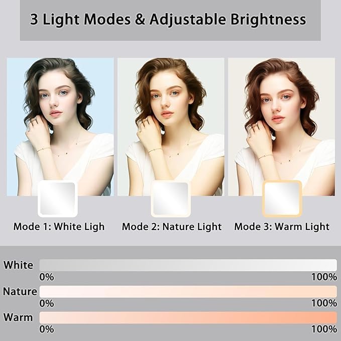 - 【makeup bag with led mirror】travel makeup bag is made of pu leather, waterproof and resistant, easy to clean.the travel makeup bag with of led light 3 color setting. 0-100% adjustable brightness that can be switched. with a long press on the switch, and a short press can adjust the color temperature between cool, natural and warm light.the make up bag can protect your cosmetics well, whether you are traveling or be away on official business, you can take your dresser everywhere.