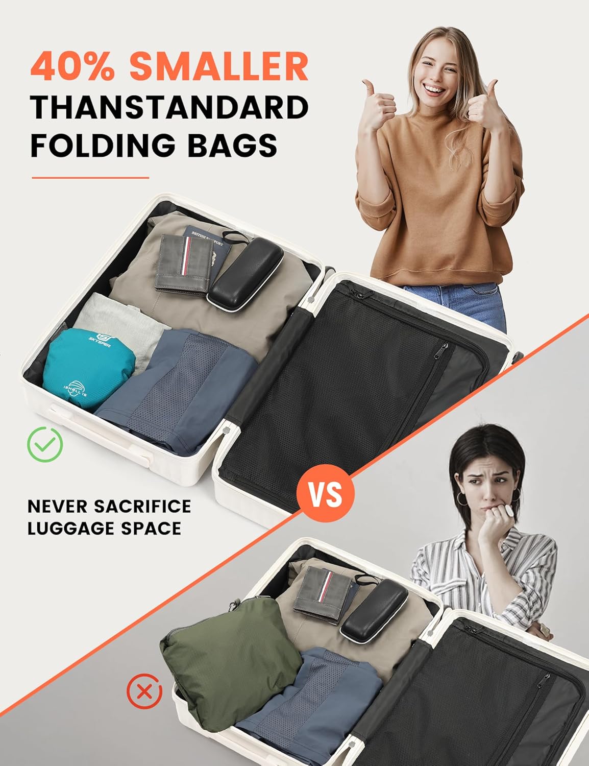 - 【Space-Saving & Ultra Lightweight】190g (6.7oz) weight; 5.5x5.5in (14x14cm) folded size. Fits in carry-on luggage or purse as emergency backup pack.