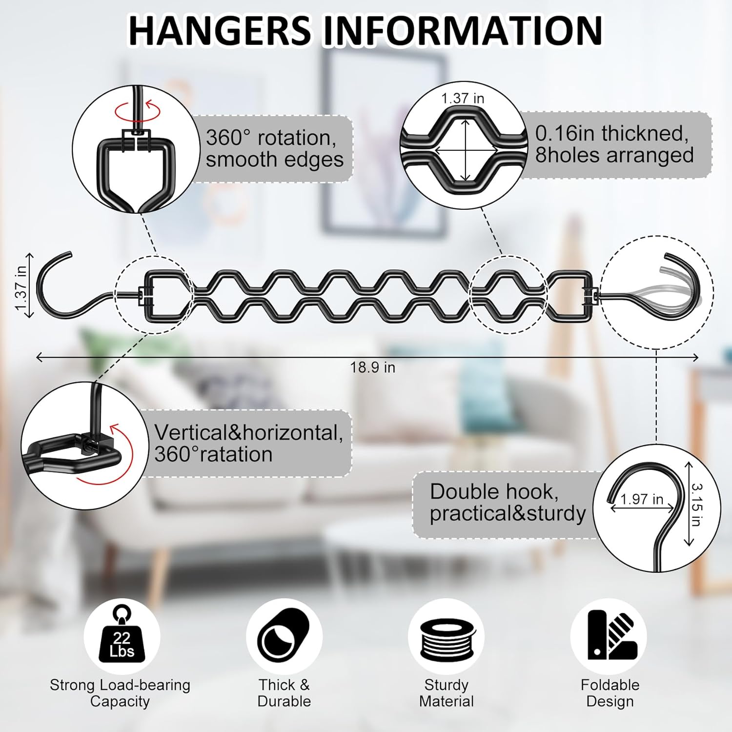 - Flexibe 360° Rotation Design: The hanging closet organizer are designed with double hooks, having 8 diamond-shaped holes arranged equidistantly, prevent clothes from slipping off when collapsed vertically, you can organize clothes by type or season, effectively utilizing every inch of available space. The holes of the dorm hangers space saving hangers for clothes are regardless of positive/negative or above/below, you can rotate the hooks 360 degrees for easy access