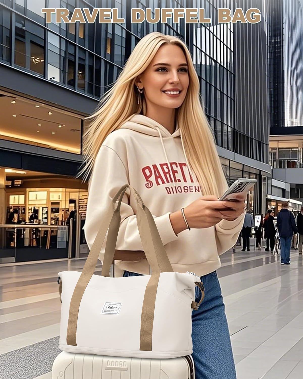 Travel Duffel Bag, Sports Tote Gym Bag, Shoulder Weekender Overnight Bag for Women