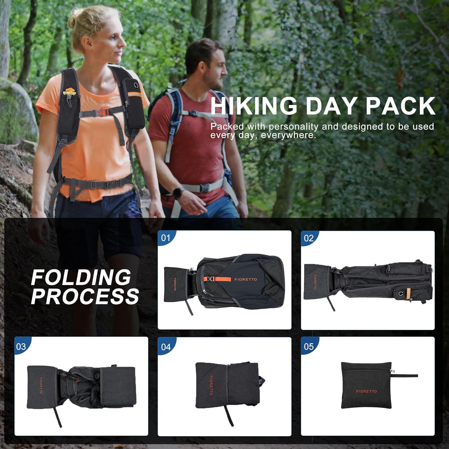 FIORETTO 20L Hiking Backpack for Women Men Mini Packable Backpack Lightweight Small Daypack for Camping Travel Outdoor, Black