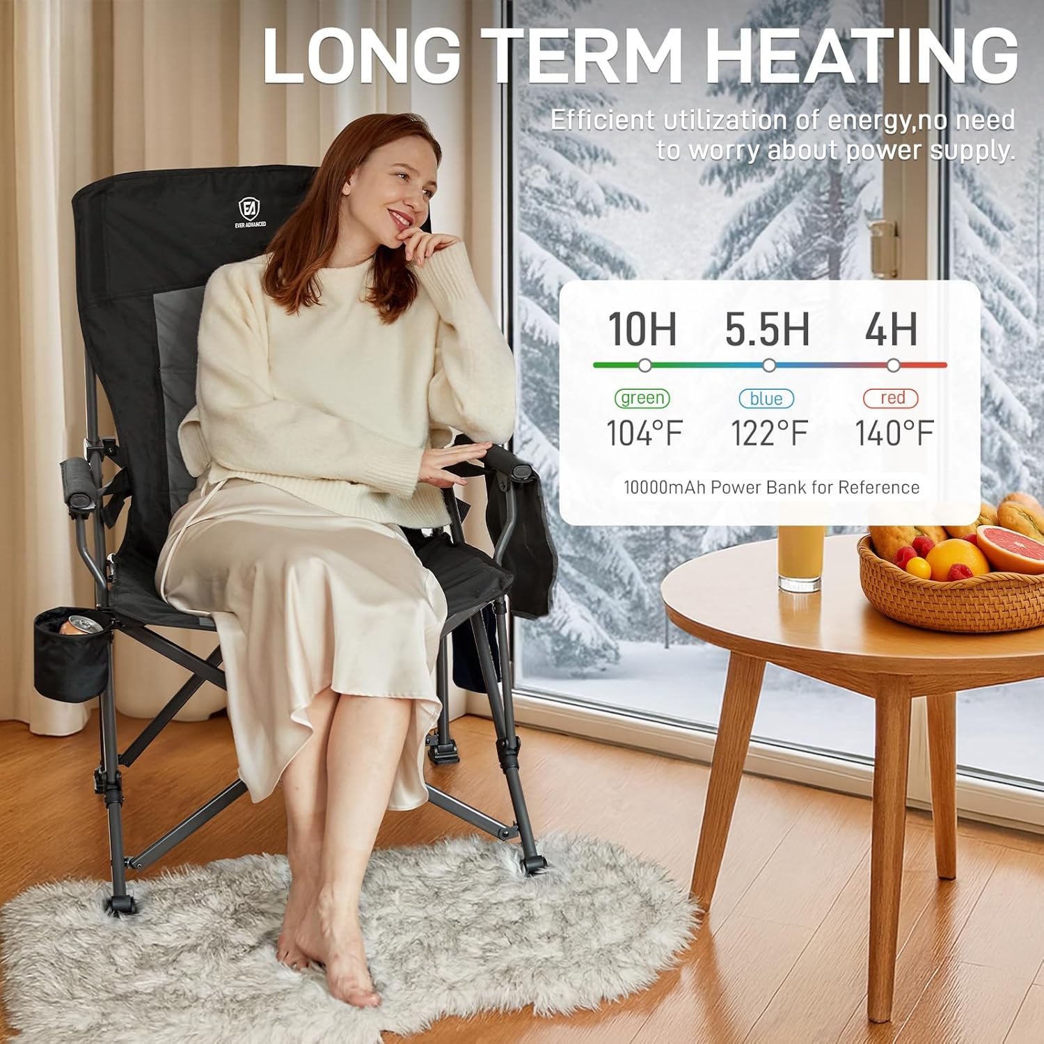 EVER ADVANCED Heated Oversized Foldable Camping Chair for Adults with Adjustable Lumbar Support, Heavy Duty Chair with Side Pockets, Heated Portable Collapsible Quad Chair for Outside, Support 500lbs