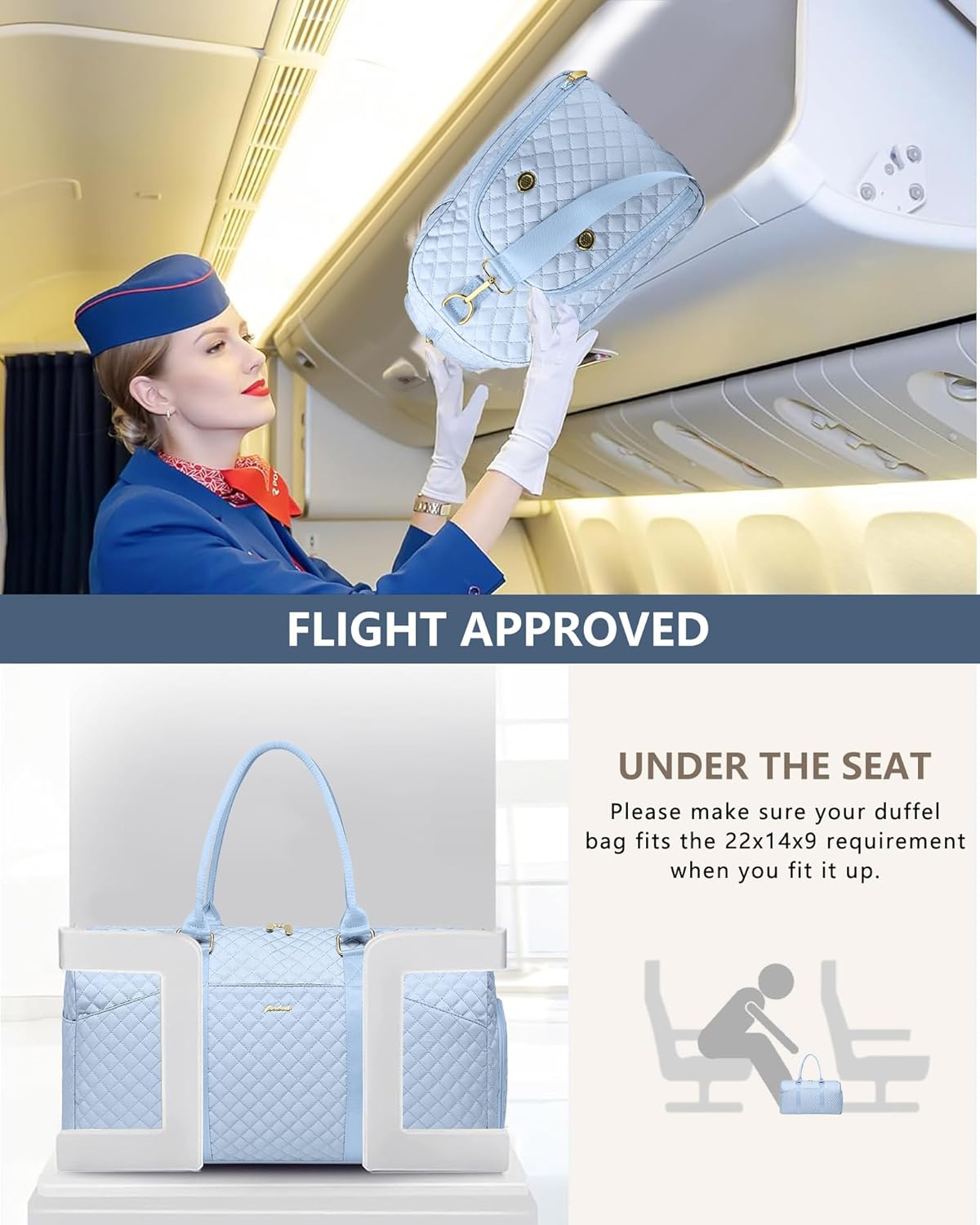 Women Duffle Weekender Travel Bag: Large Duffel Bags with Shoe Compartment Carry On Overnight Tote with Wet Pocket Traveling Weekend Gym Yoga Hospital Bag for Womens Light Blue