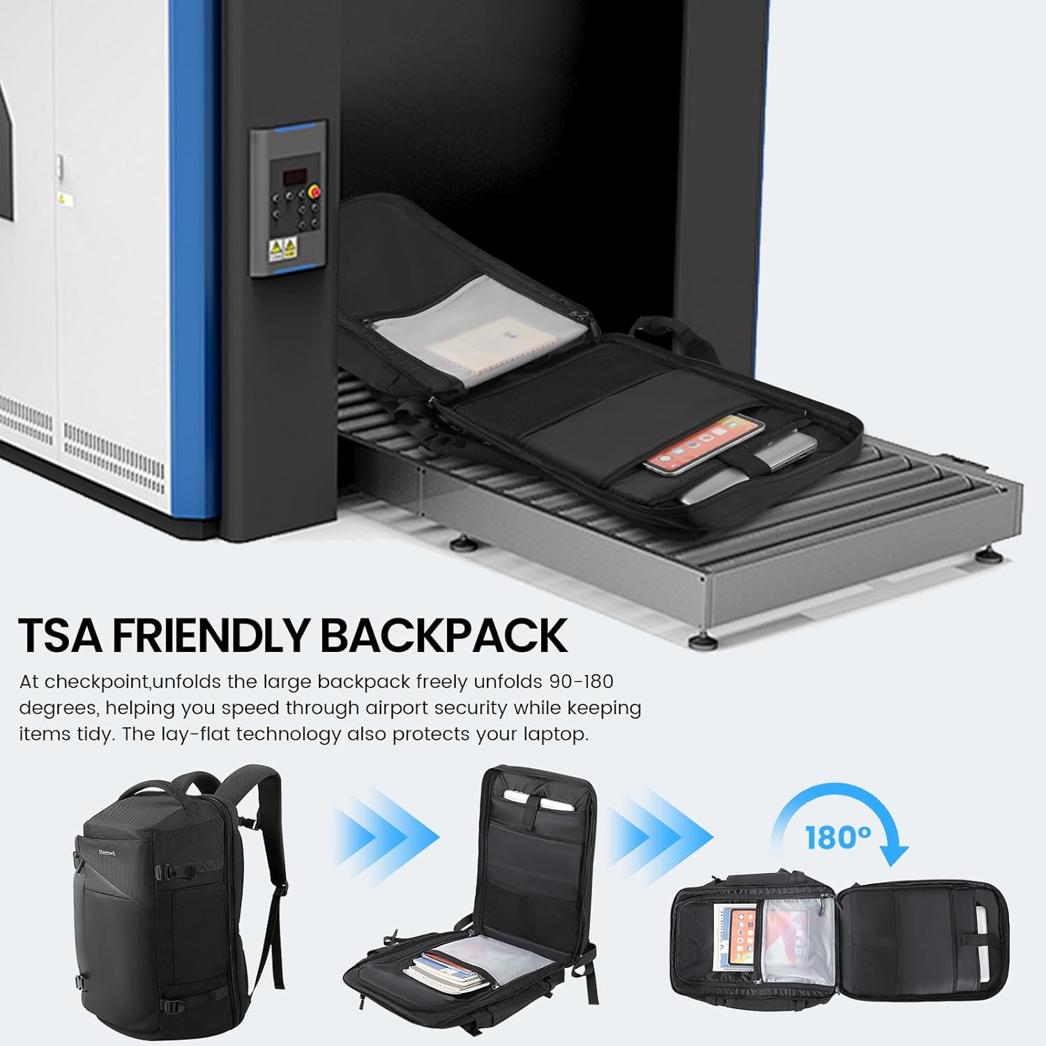 - TSA Friendly & Flight Approved Laptop Backpack: This TSA-compliant backpack for travel carry on opens 90°-180°, allowing you to pass through airport security without having to fully open the bag. Approved by most U.S. airlines as a carry-on. This travel laptop backpack fits easily into the overhead compartment. Perfect for business trips, weekend getaways, and frequent flyers who want to move around easily