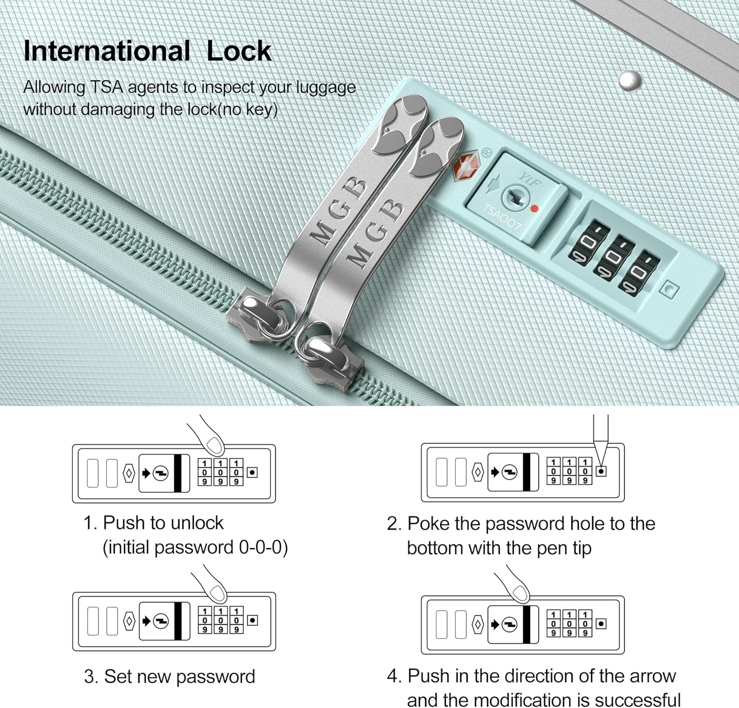 - High-end Material: MGB hard shell suitcase is made of 3-layers 100%PC which is extremely strength and lightness. The top opening suitcase has passed the shock drop test. The top open carry on luggage diamond-shaped texture is extremely scratch-resistant and not easily scratched, keeping the hard case luggage looking great on trip after trip.