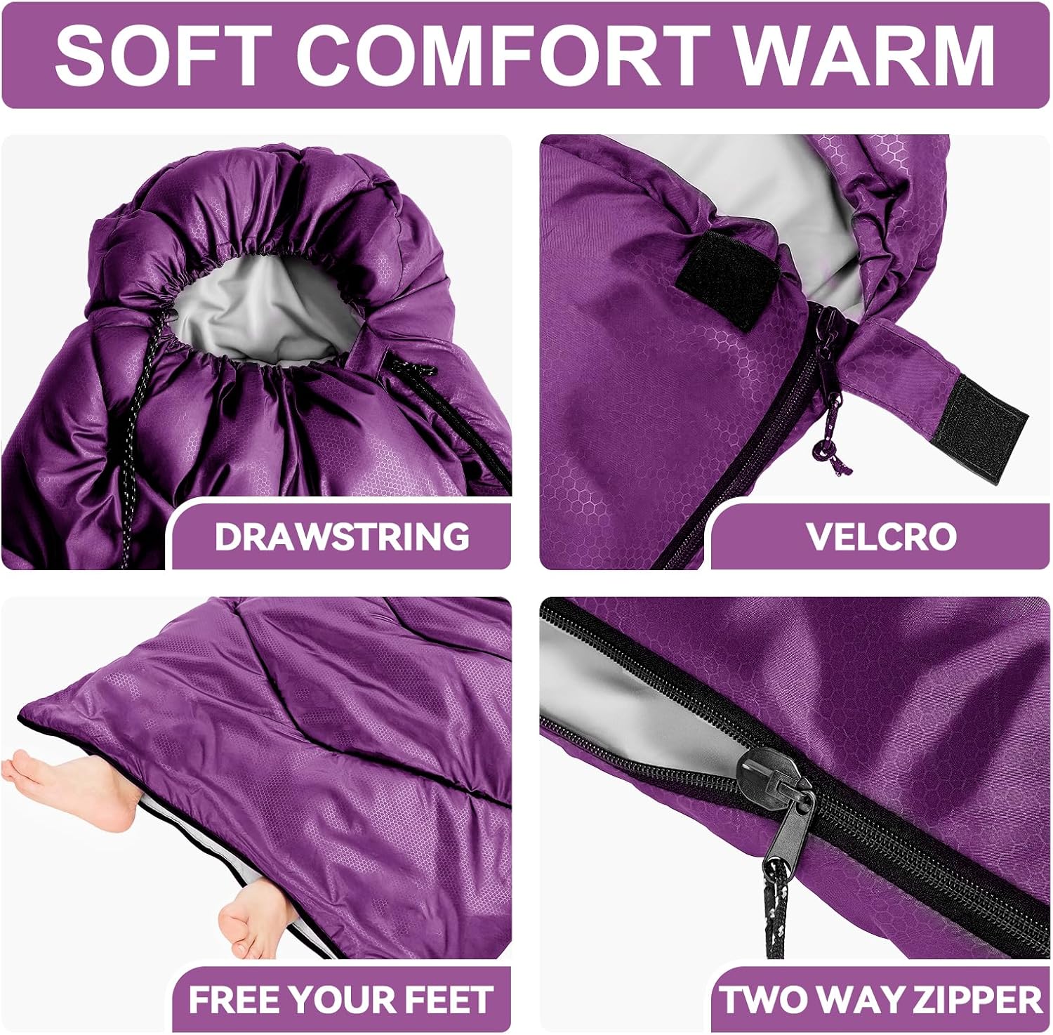 - 【GREAT SLEEPING BAGS FOR ADULTS AND KIDS】SIZE: 32.5 by 86.6 inches (W x D),More spacious than a regular sleeping bag. Opens up to make a nice comforter,making them ideal for tall teens, adults, or family camping trips.