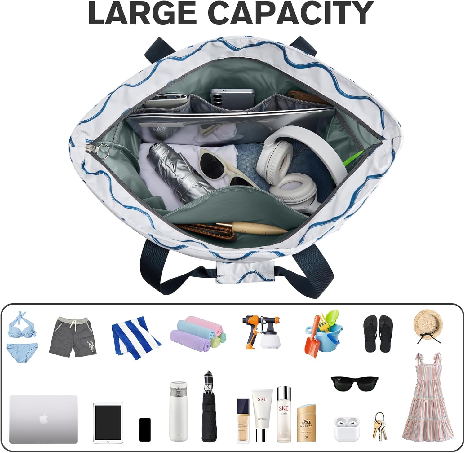 - 【Waterproof & Sandproof Beach Bag】Beach bags for women is made of durable, high-quality fabric that is both water and tear resistant, providing protection from sand and water. You can enjoy a day on the beach without worrying about your belongings getting wet or damaged