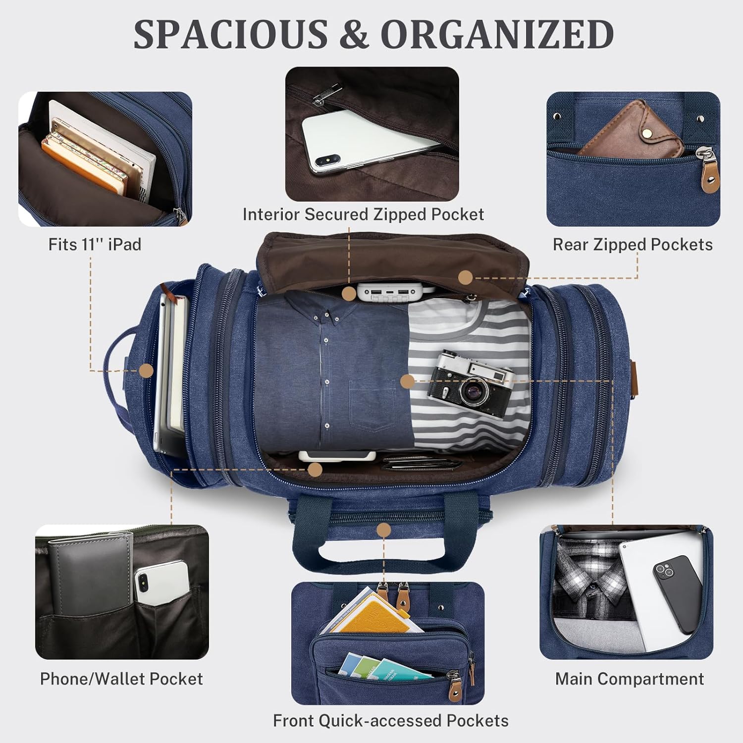 - Durable Materials:The Expandable Duffel Bag is made of high-quality canvas and premium ultra-fine fiber materials, featuring sturdy antique bronze hardware and smooth zippers that are durable and practical
