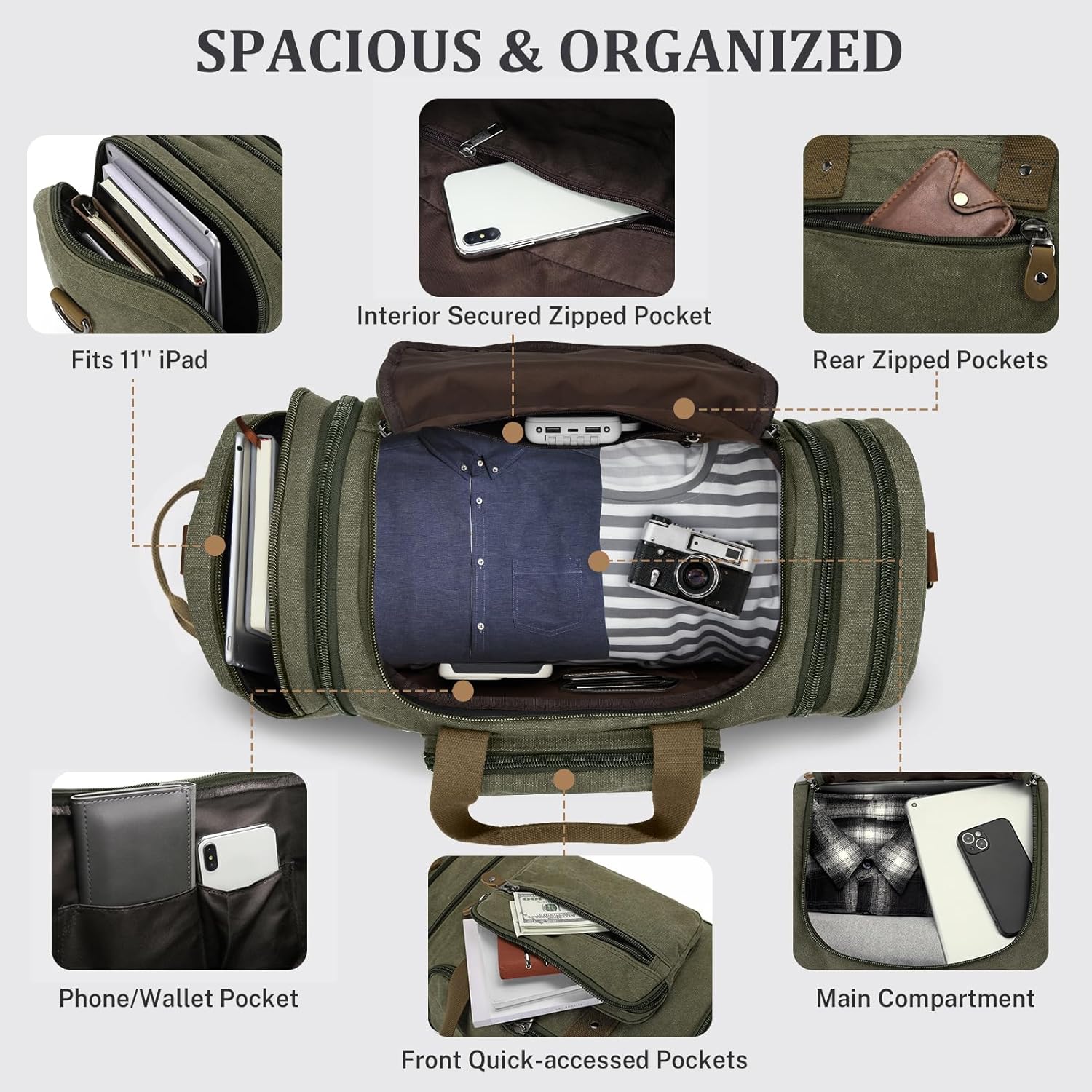 - Durable Materials:The Expandable Duffel Bag is made of high-quality canvas and premium ultra-fine fiber materials, featuring sturdy antique bronze hardware and smooth zippers that are durable and practical