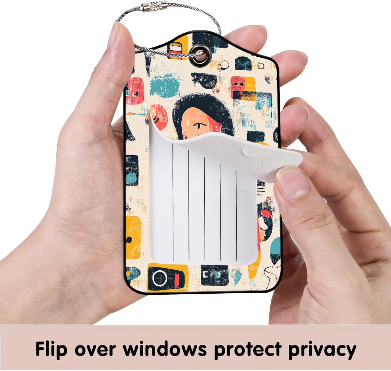 Luggage Tags for Suitcases, 2-Pack PU Leather for Cruise & Travel, Baggage ID Tags with Privacy Cover & Address Card, Durable Metal Ring, Kids Adults Travel Accessories, Artistic Mindscape