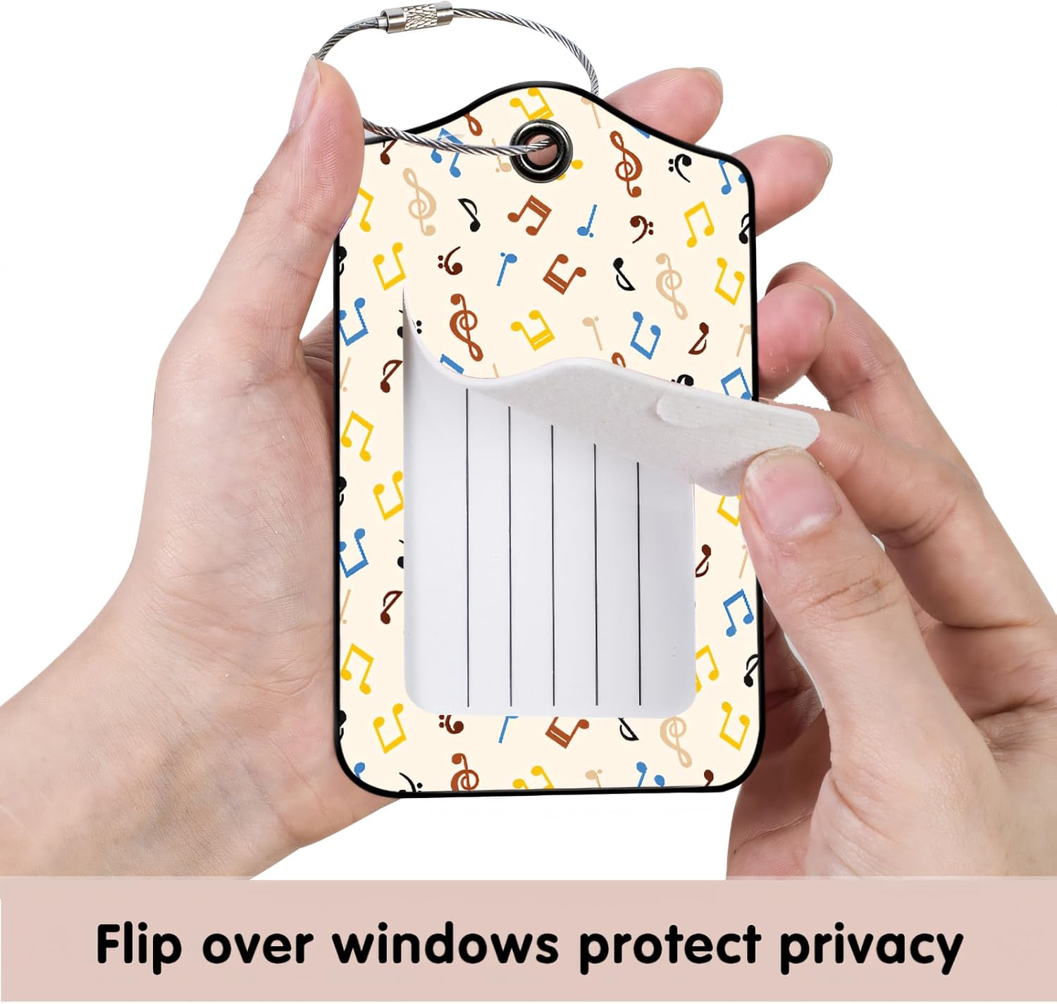 Luggage Tags for Suitcases, 2-Pack PU Leather for Cruise & Travel, Baggage ID Tags with Privacy Cover & Address Card, Durable Metal Ring, Kids Adults Travel Accessories, Dancing Notes
