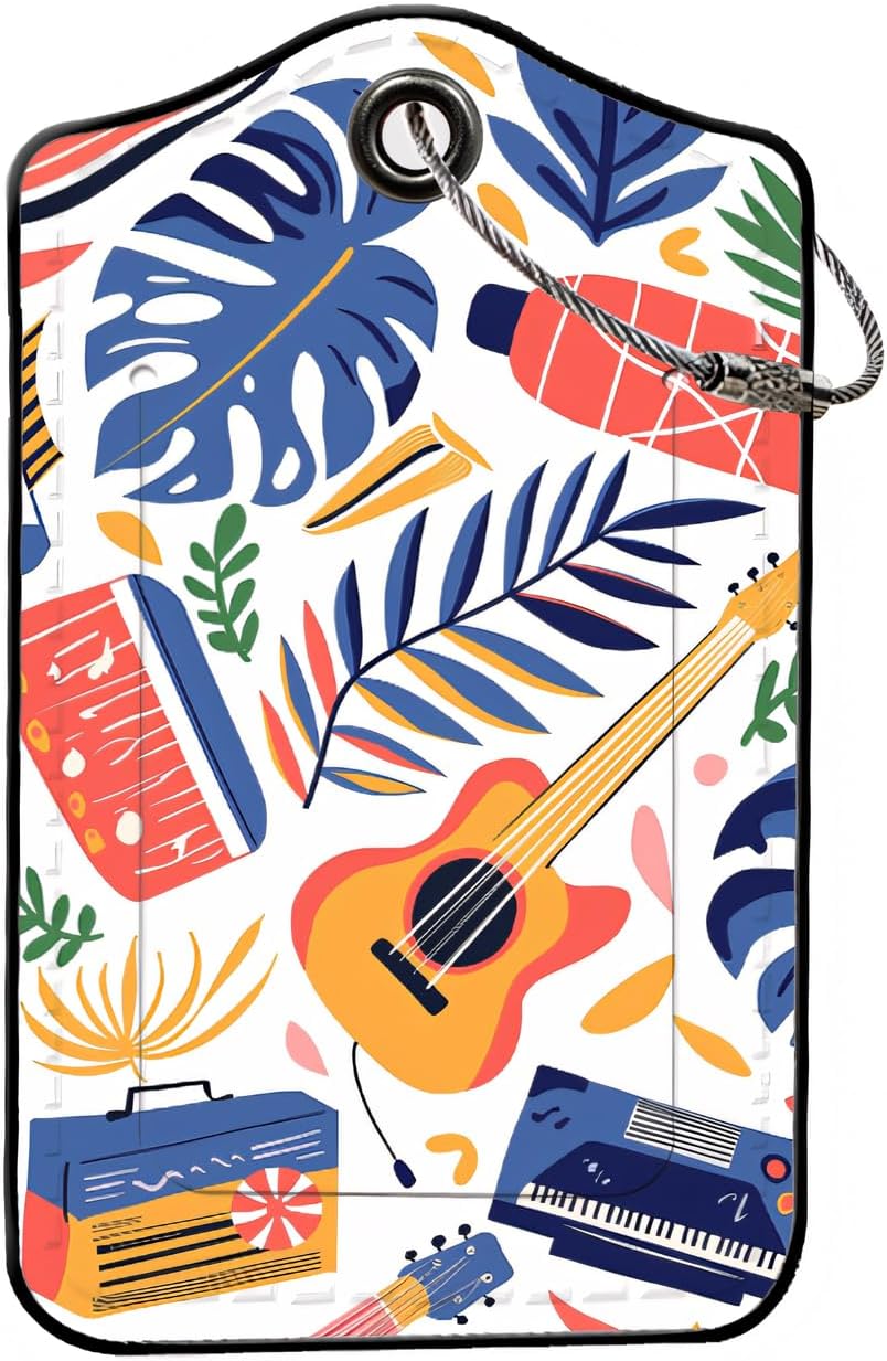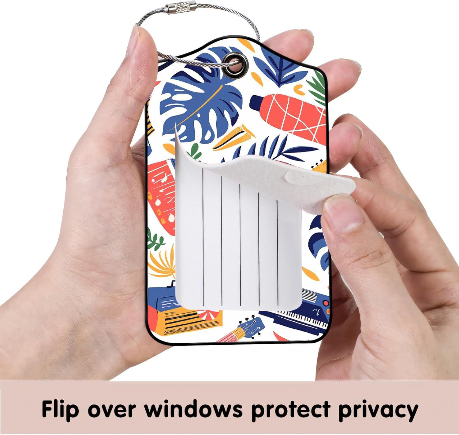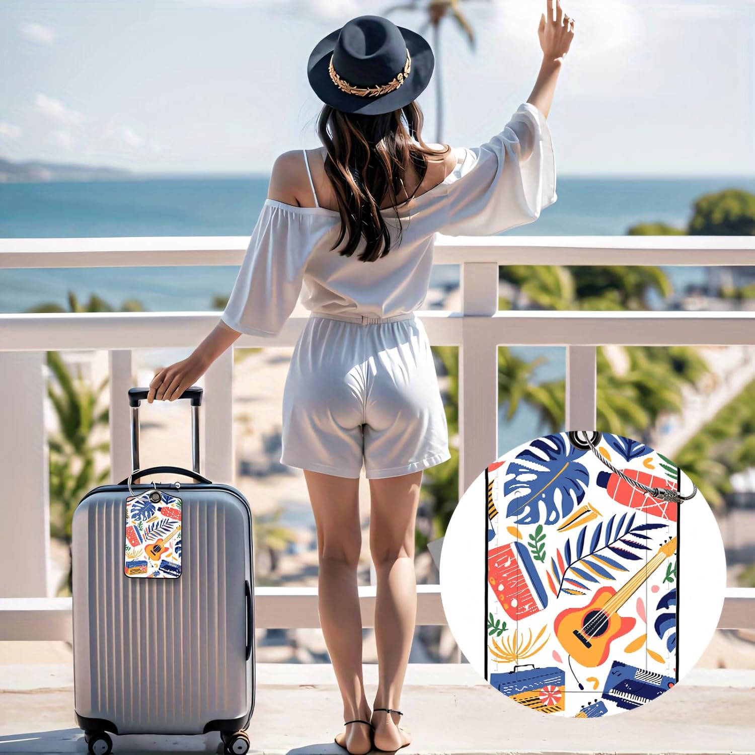 Luggage Tags for Suitcases, 2-Pack PU Leather for Cruise & Travel, Baggage ID Tags with Privacy Cover & Address Card, Durable Metal Ring, Kids Adults Travel Accessories, Tropical Rhythms